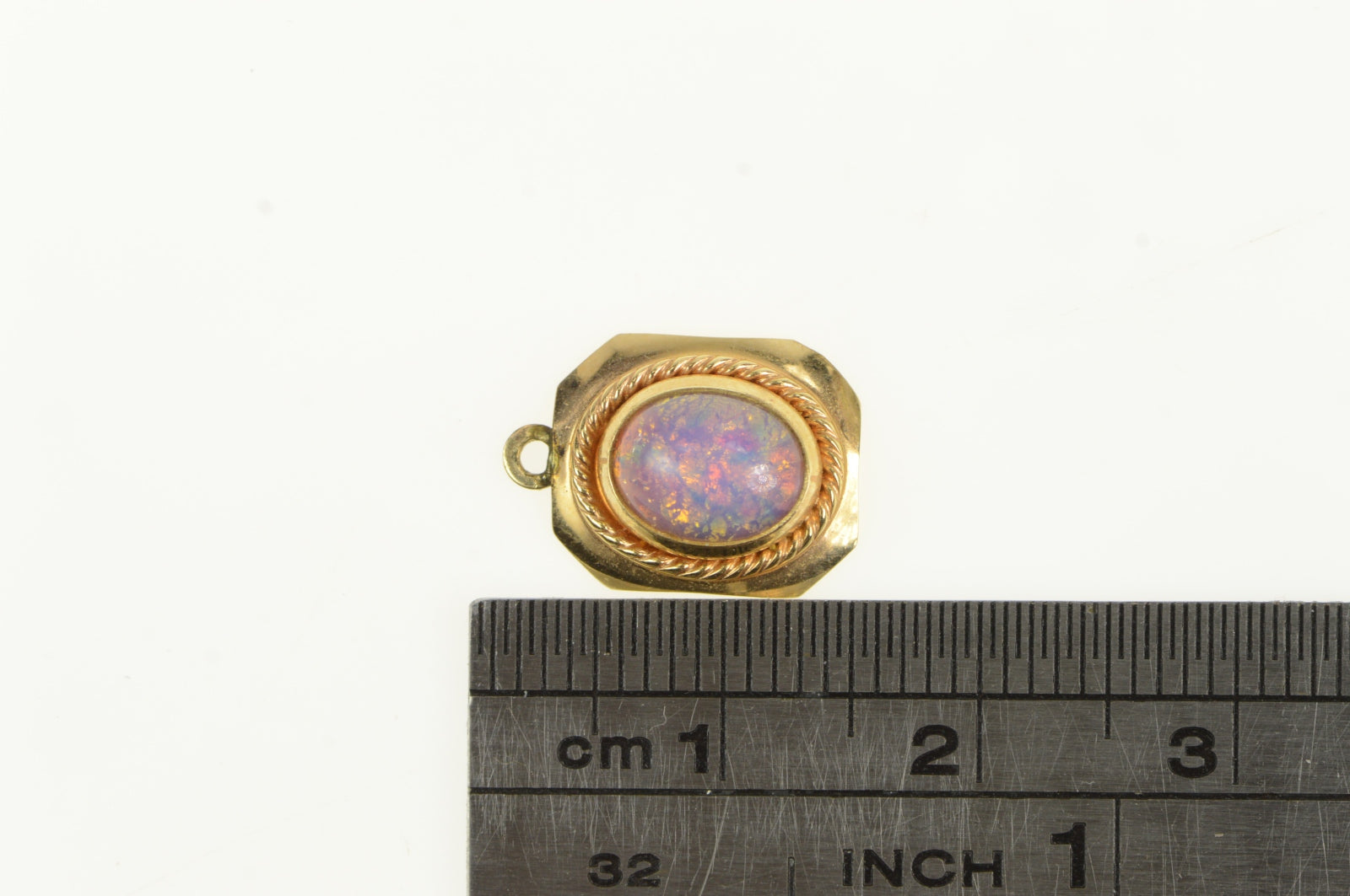 14K Oval Opal Chip Inlay Doublet Squared Charm/Pendant Yellow Gold
