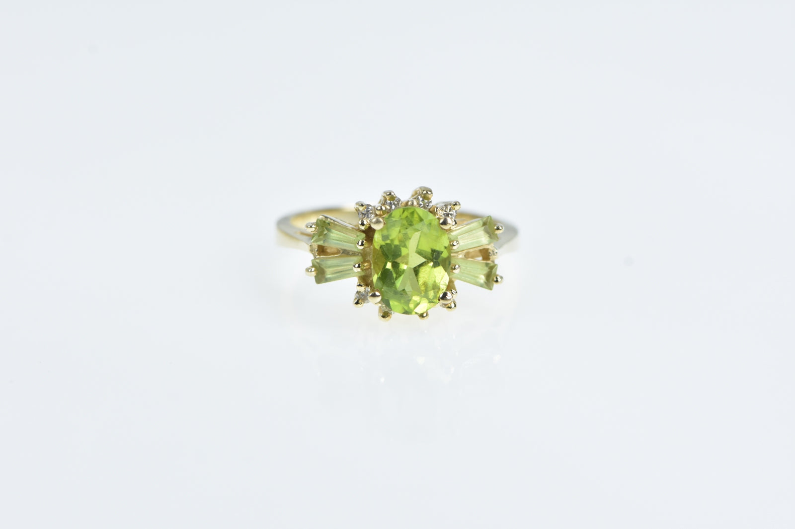 ·Item: 14K Oval Peridot Diamond Vintage Statement Ring Size 5.75 Yellow Gold