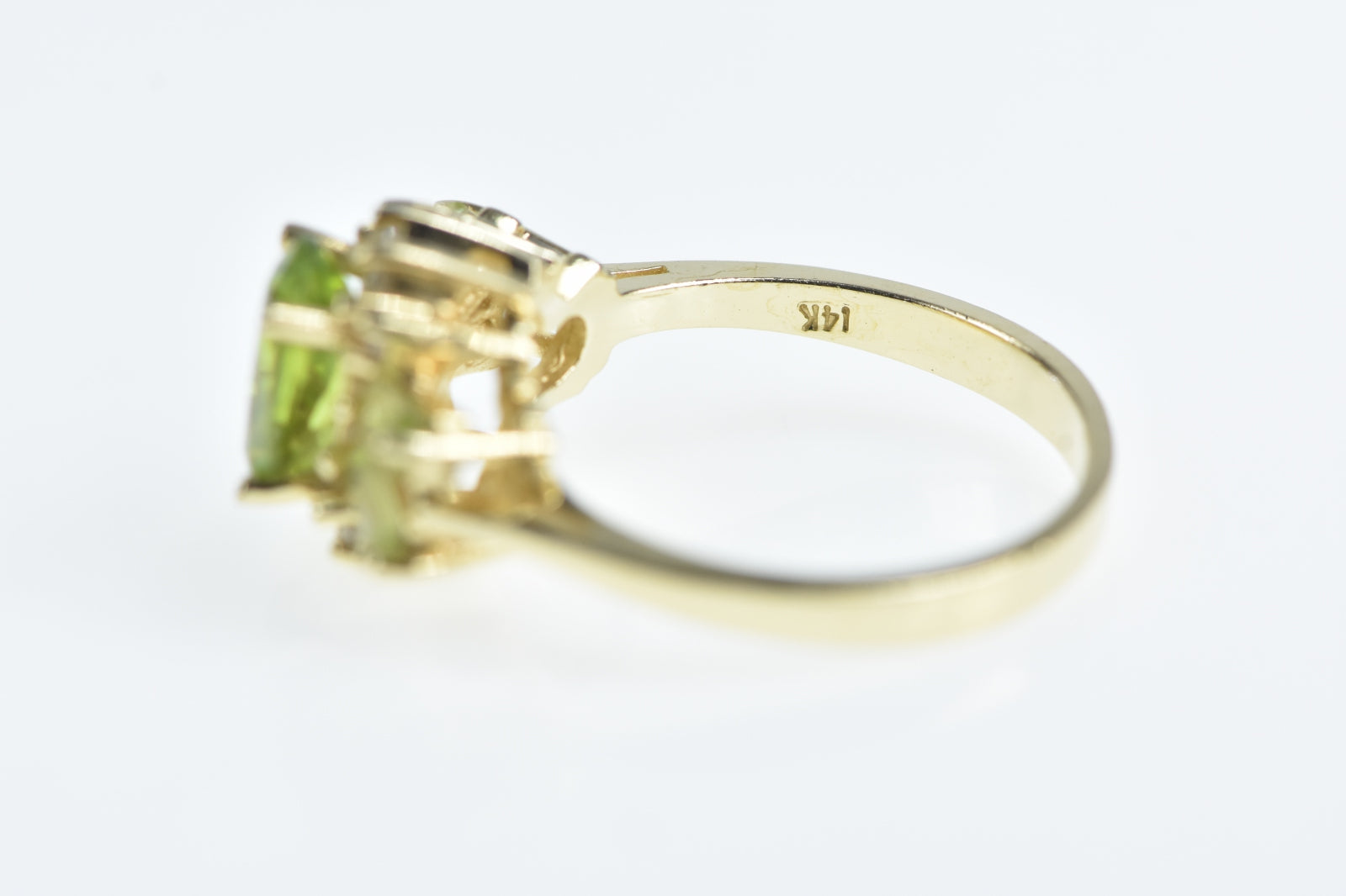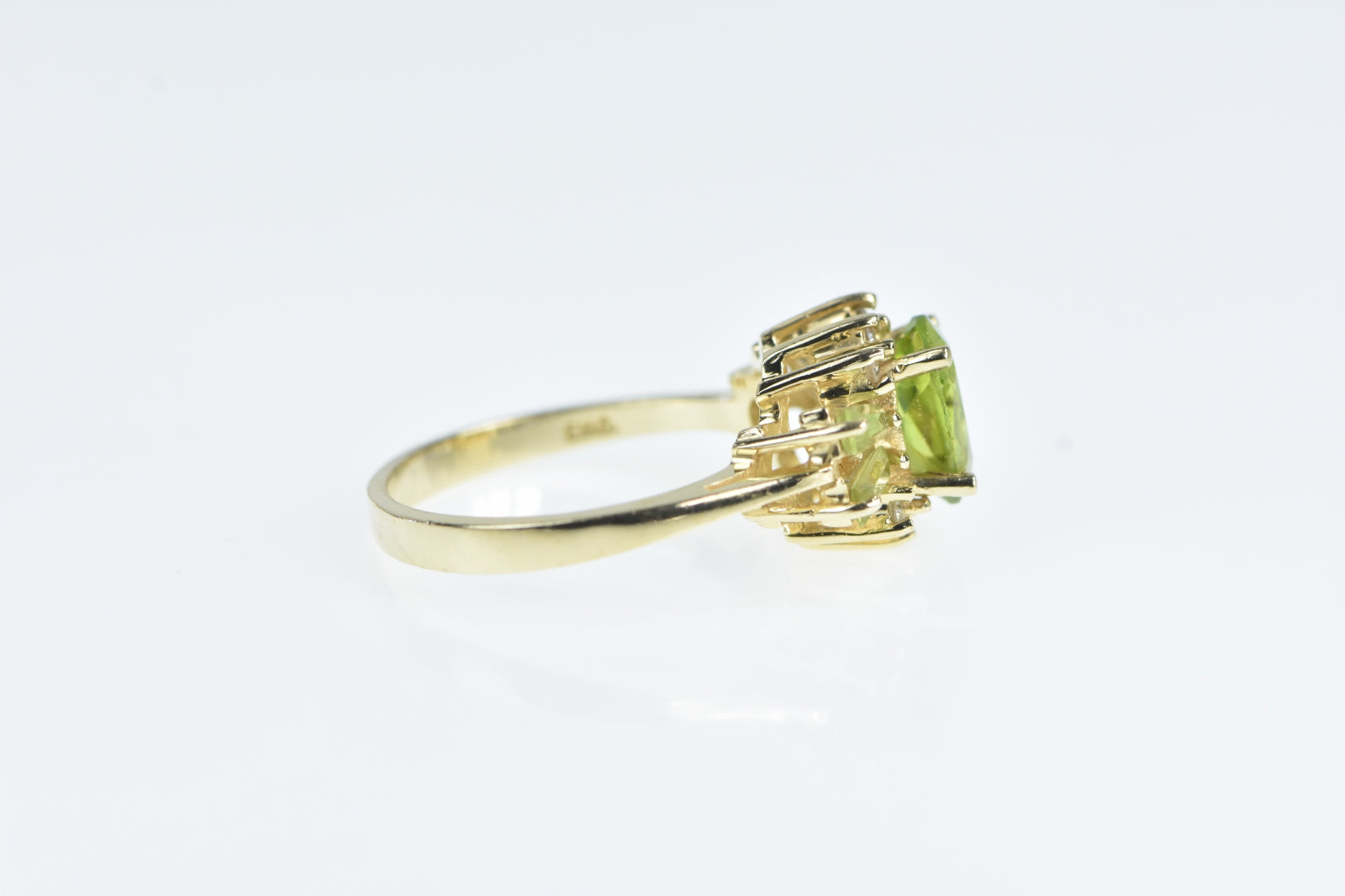 14K Oval Peridot Diamond Vintage Statement Ring Yellow Gold