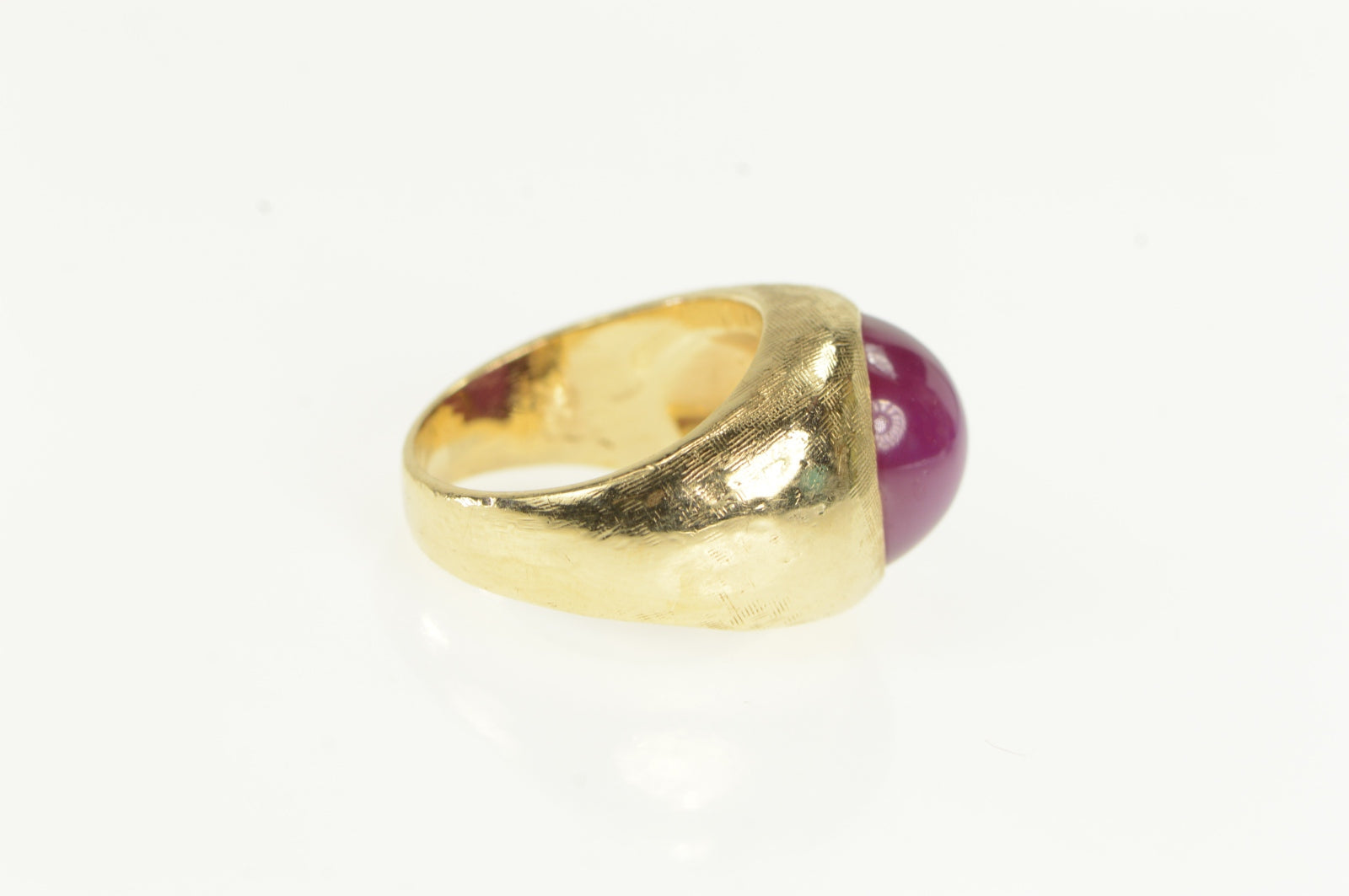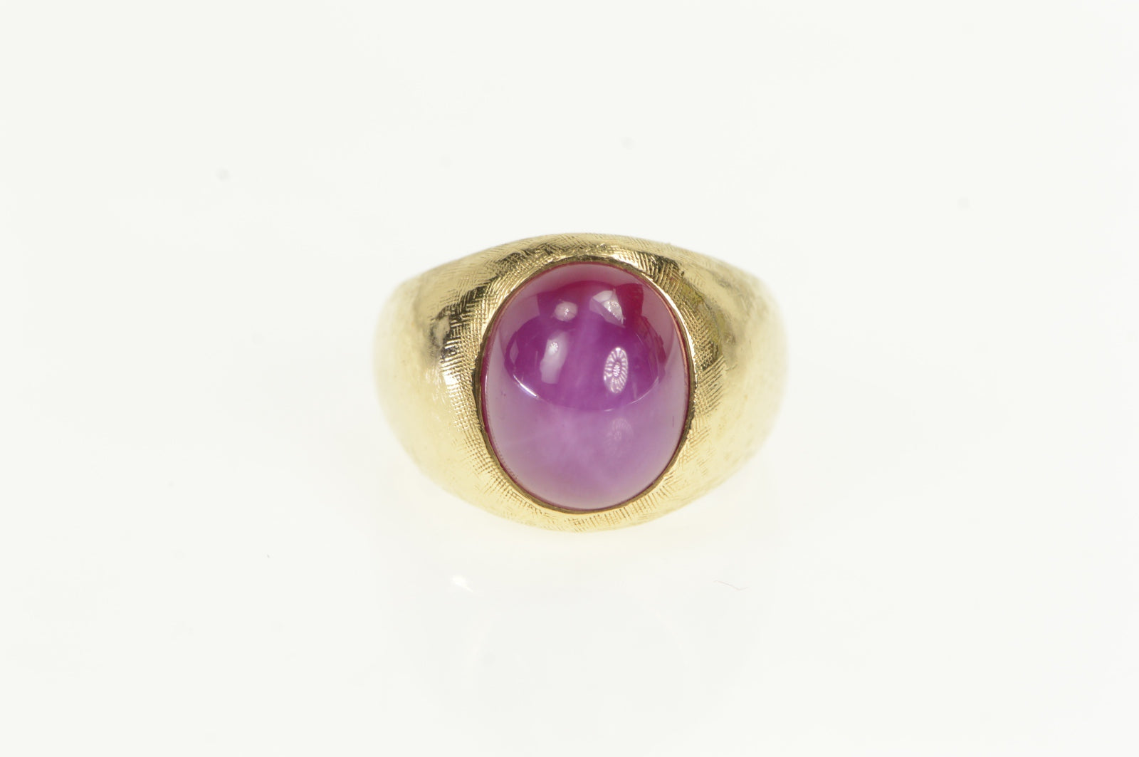 ·Item: 14K Oval Syn. Star Ruby Cabochon Vintage Retro Ring Size 6 Yellow Gold