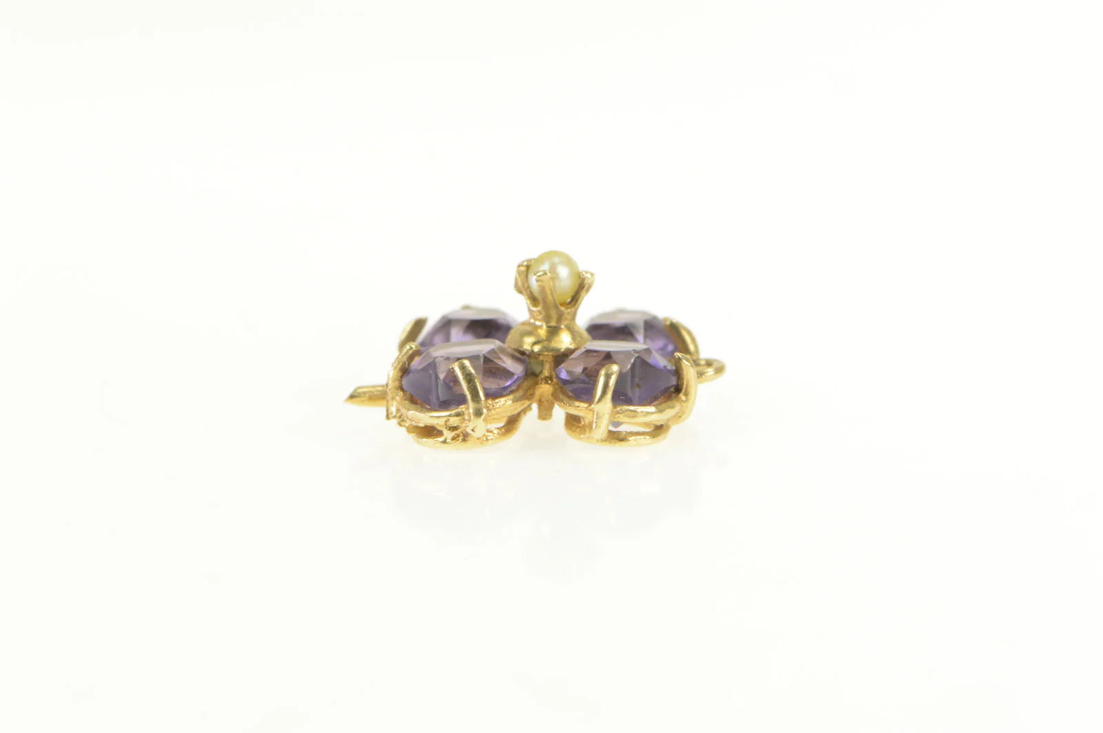 ·Item: 14K Pear Amethyst Seed Pearl Clover Shamrock Charm/Pendant Yellow Gold