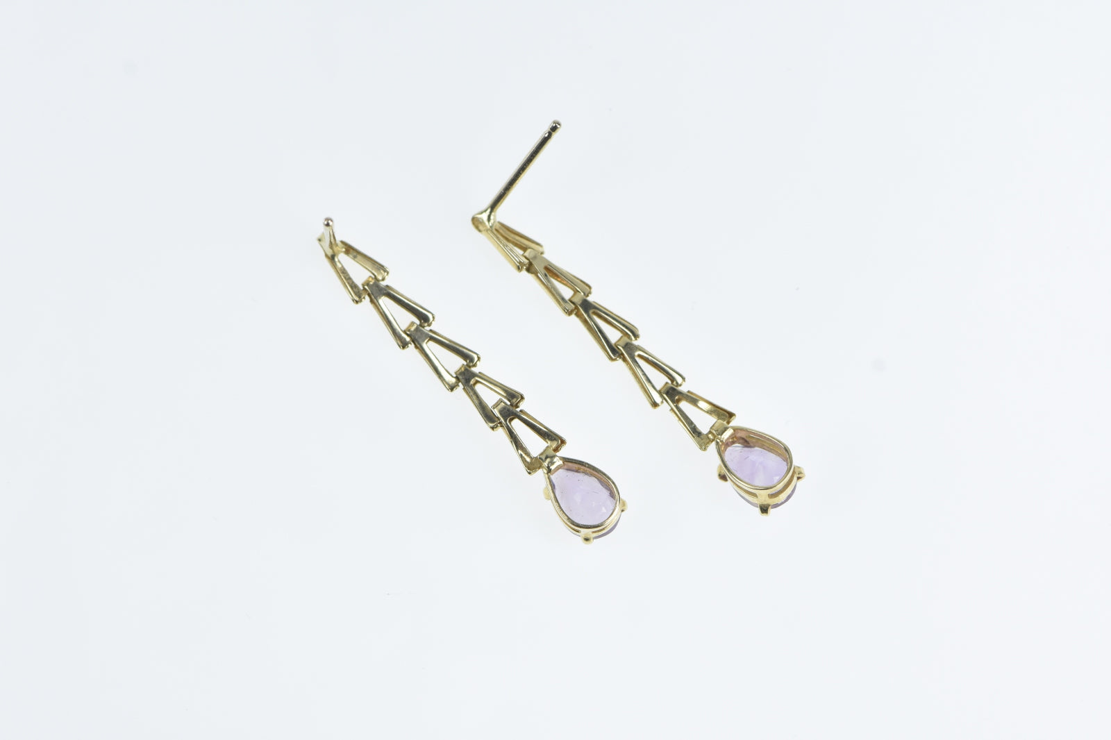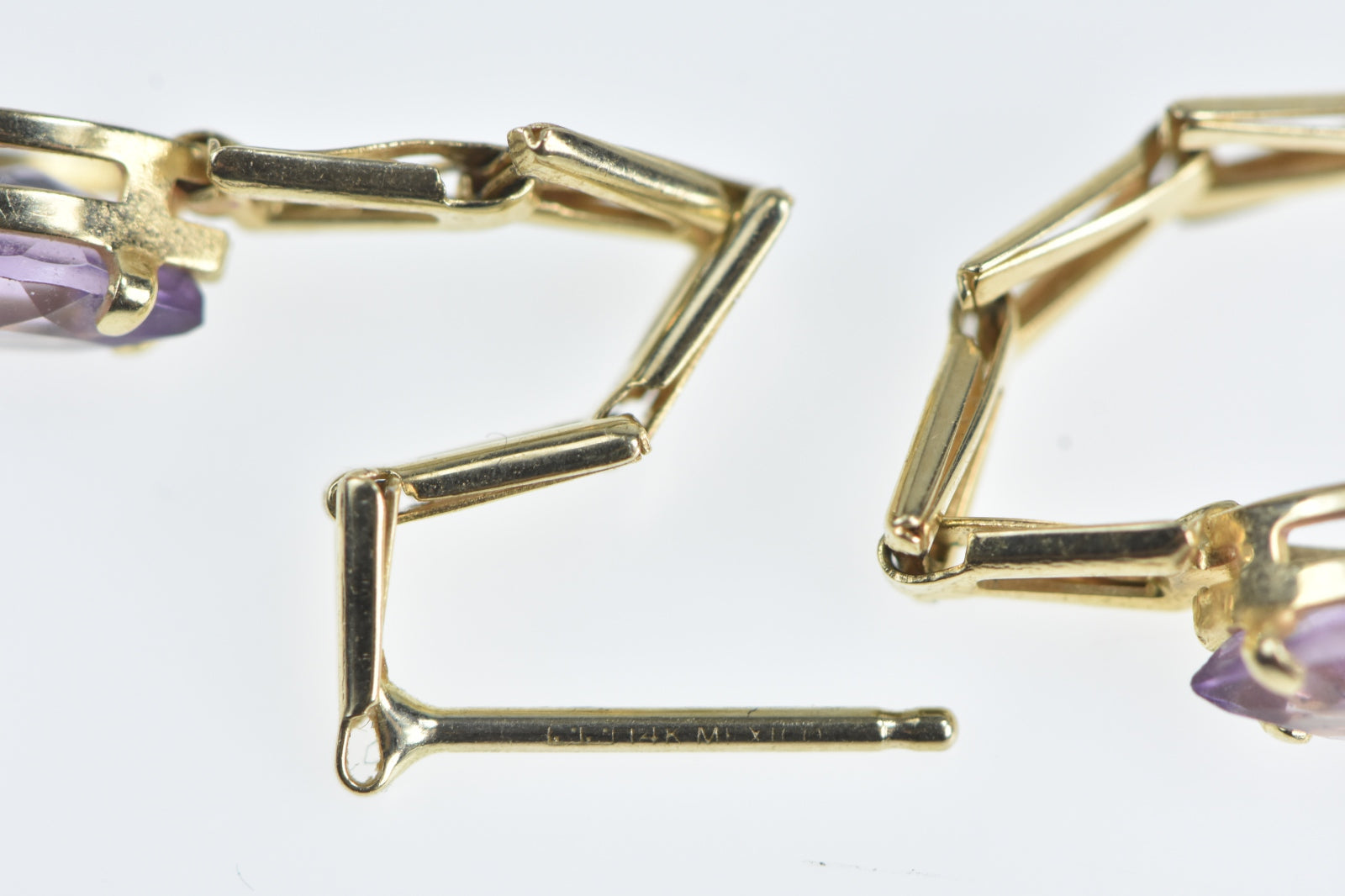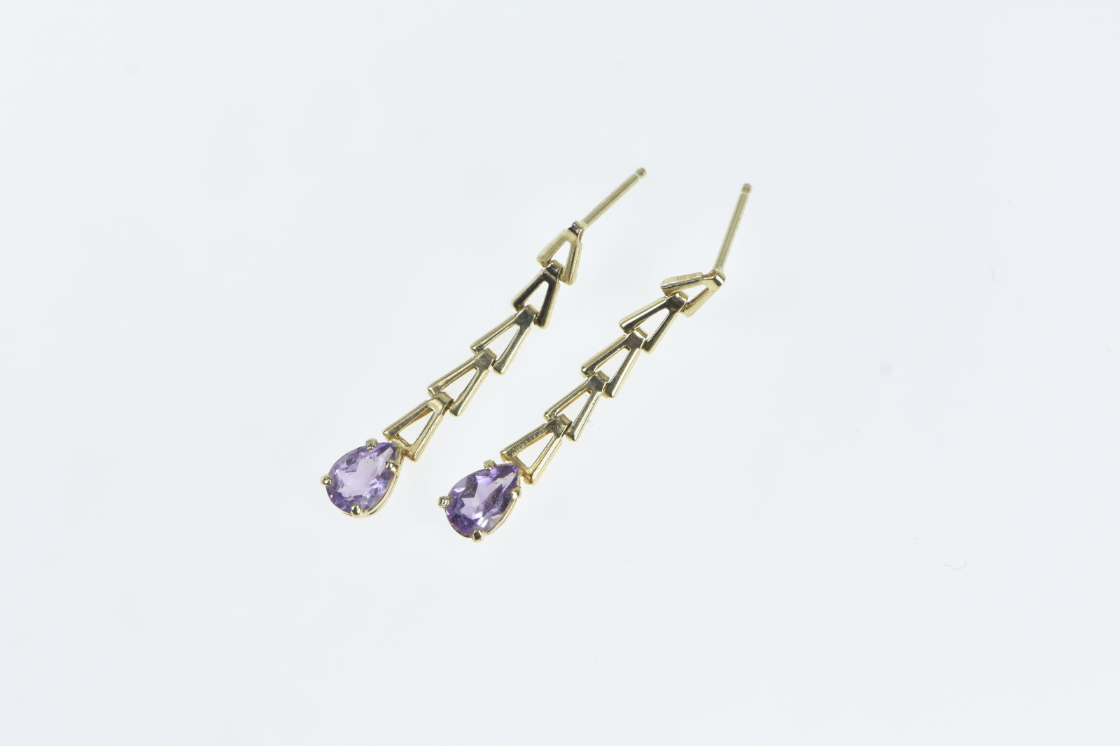 ·Item: 14K Pear Amethyst Vintage Classic Dangle Earrings Yellow Gold