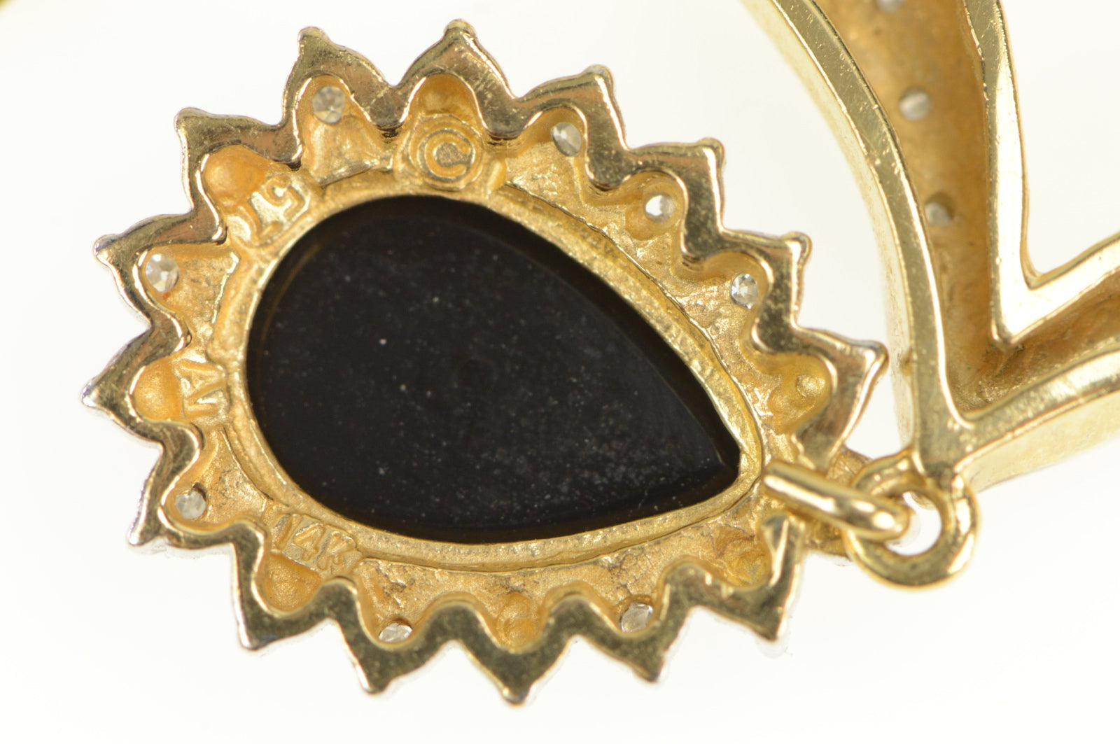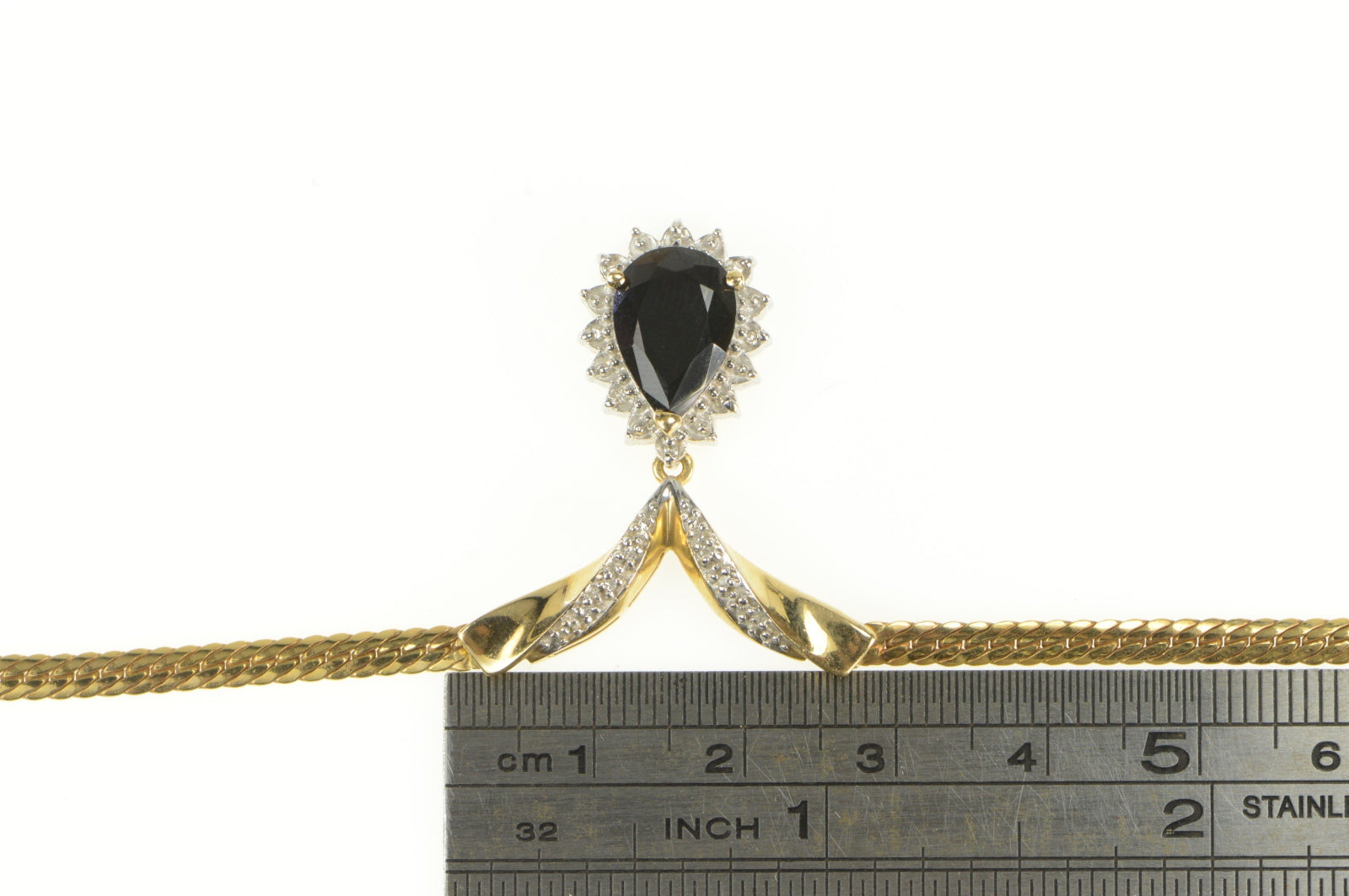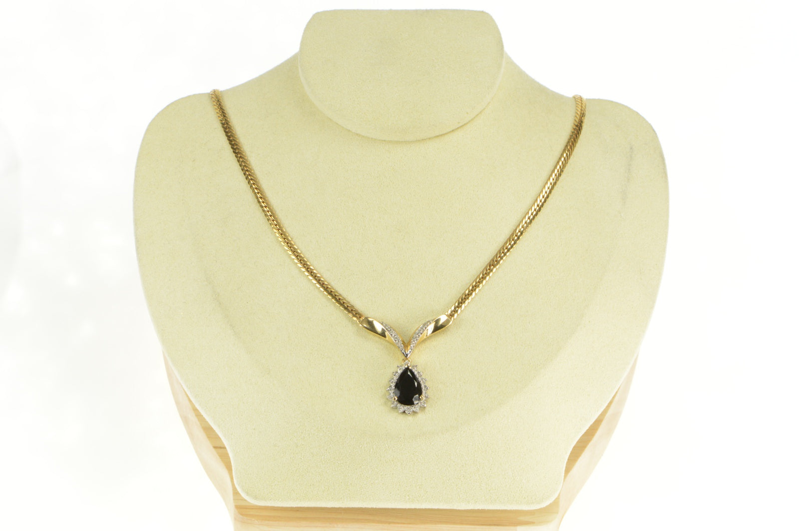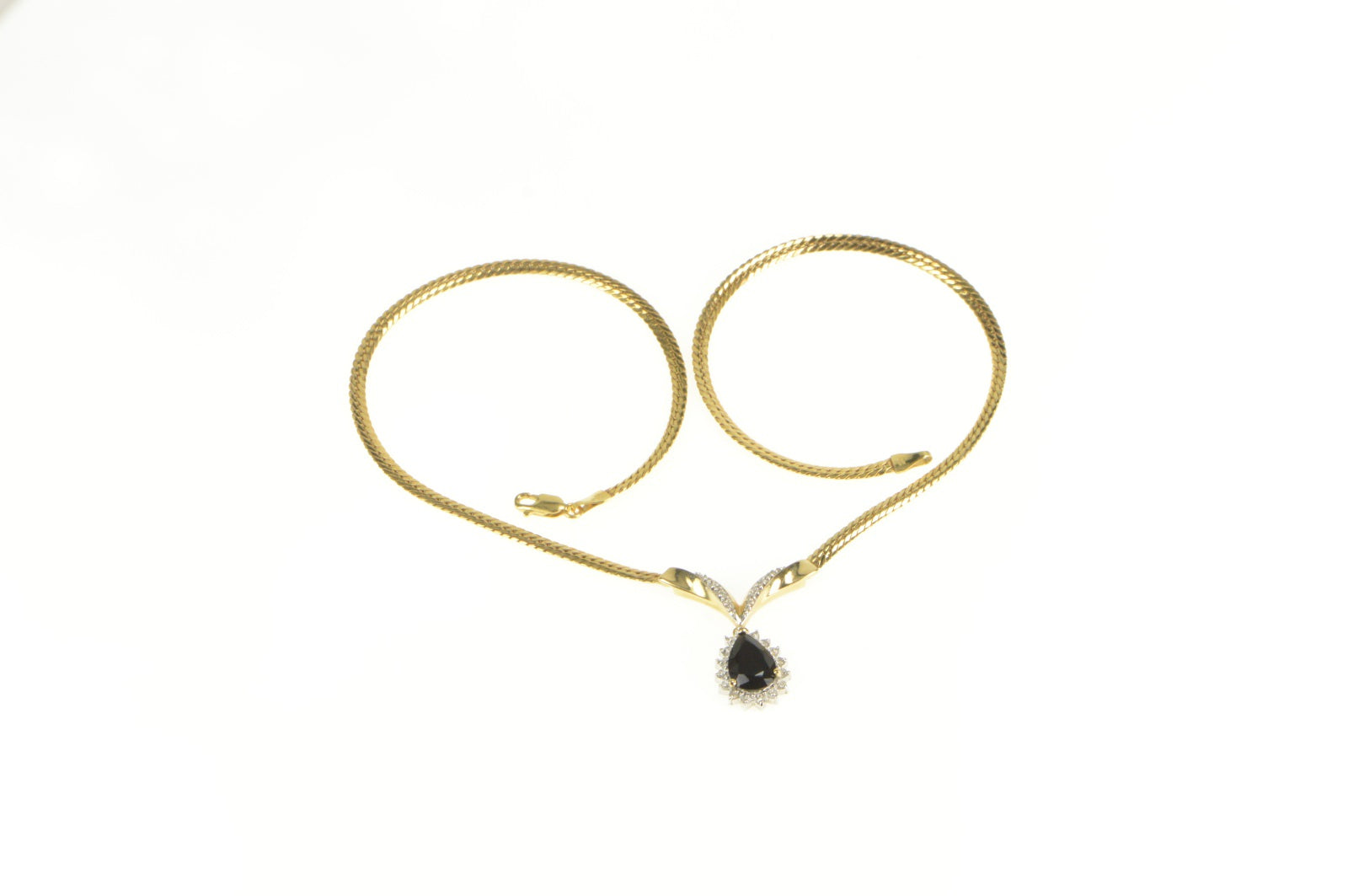 ·Item: 14K Pear Onyx Diamond Halo Herringbone Chain Necklace 17" Yellow Gold