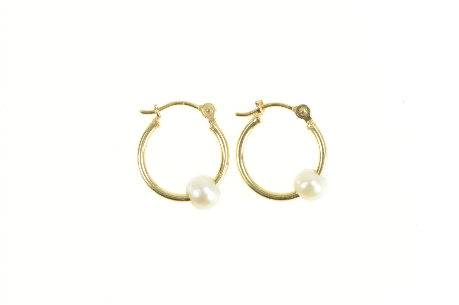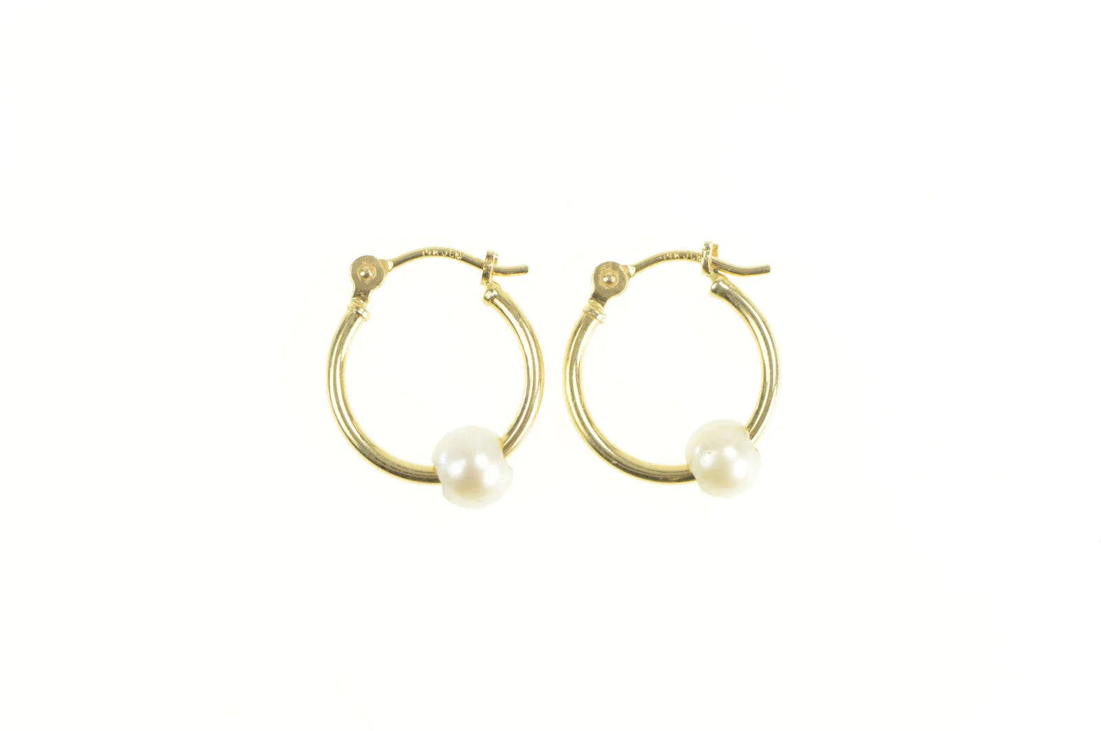 ·Item: 14K Pearl Beaded 14.5mm Classic Statement Hoop Earrings Yellow Gold