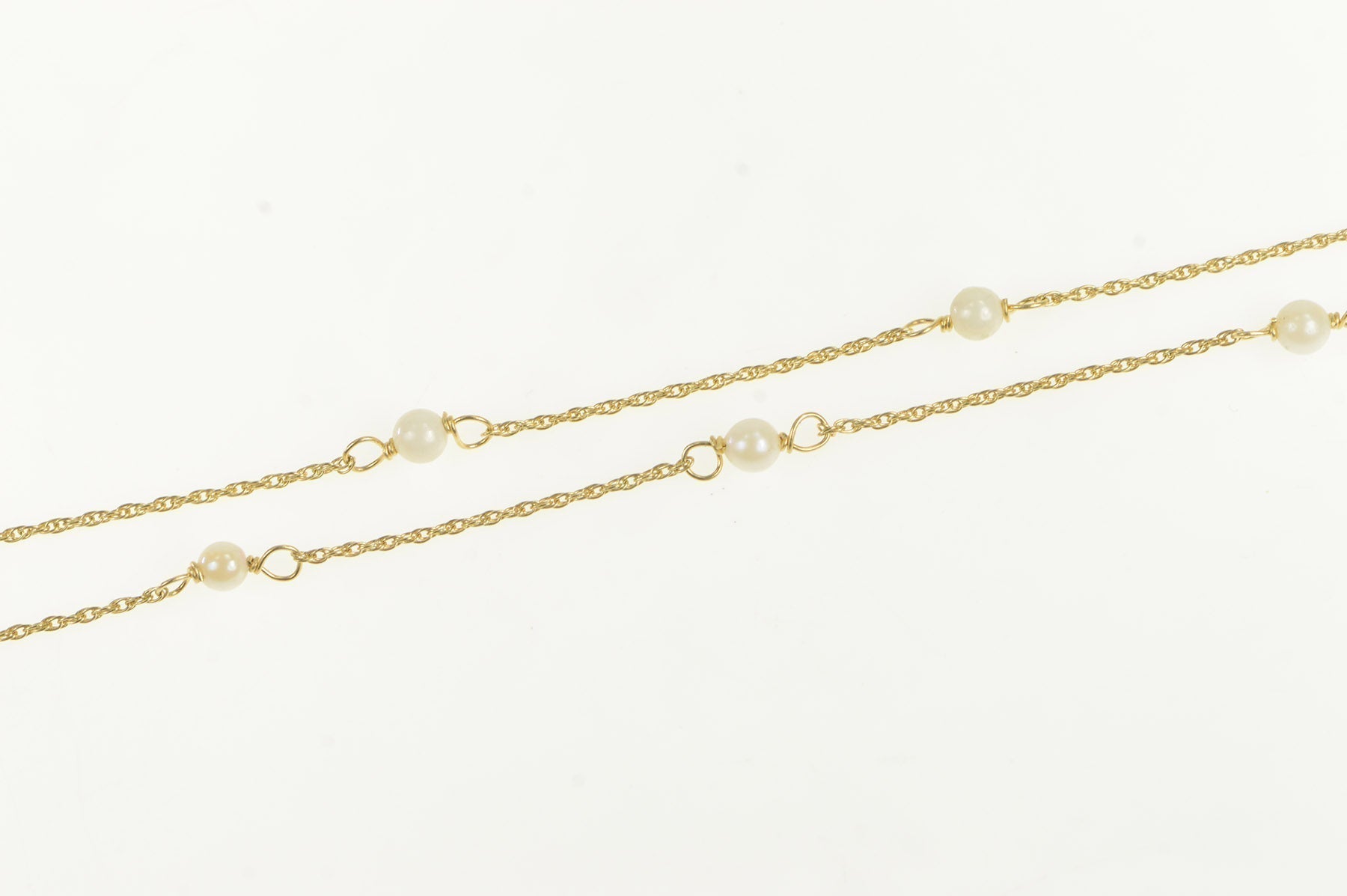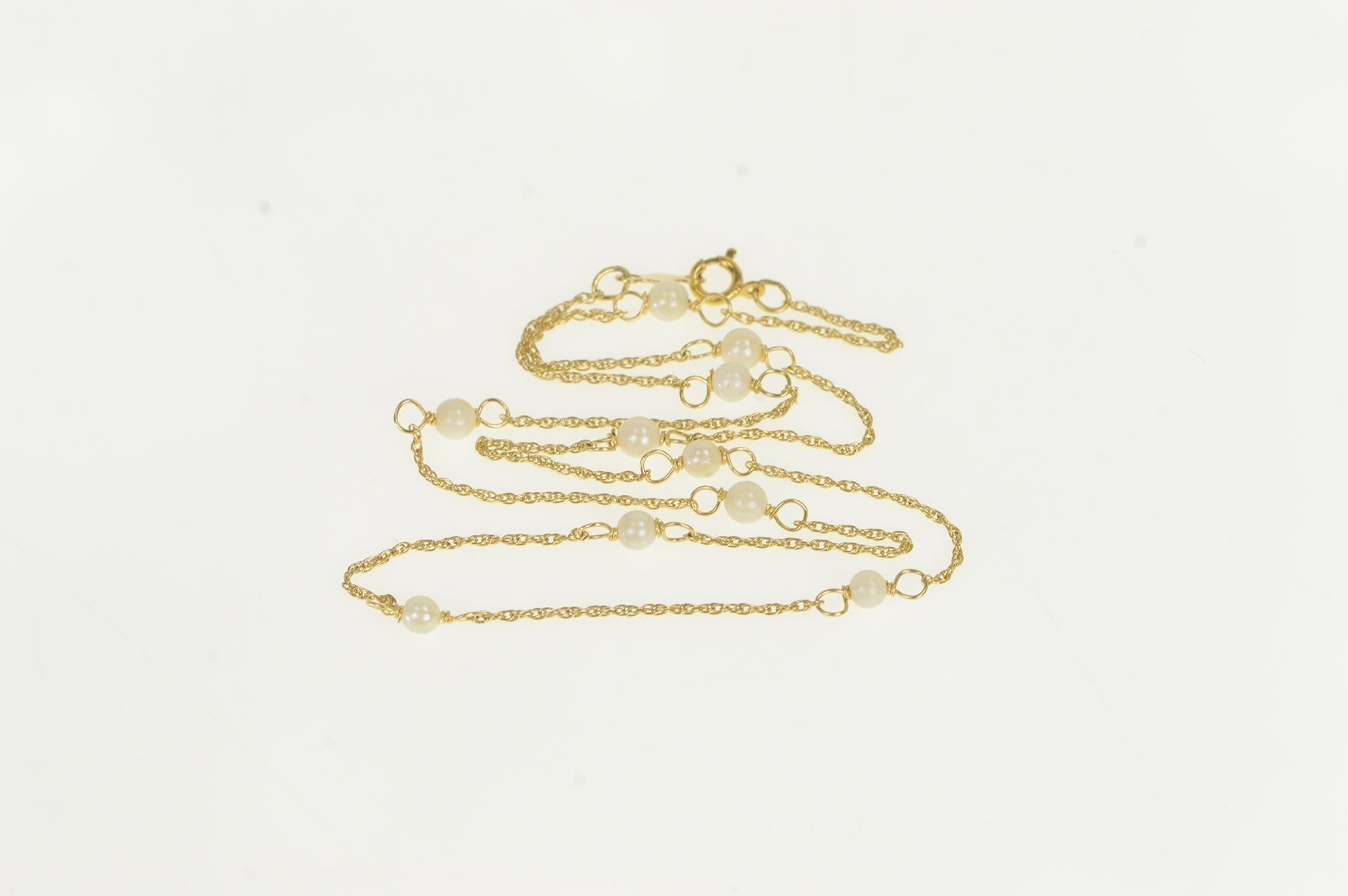 14K Pearl Beaded Rolling Rope Chain Collar Necklace 15" Yellow Gold