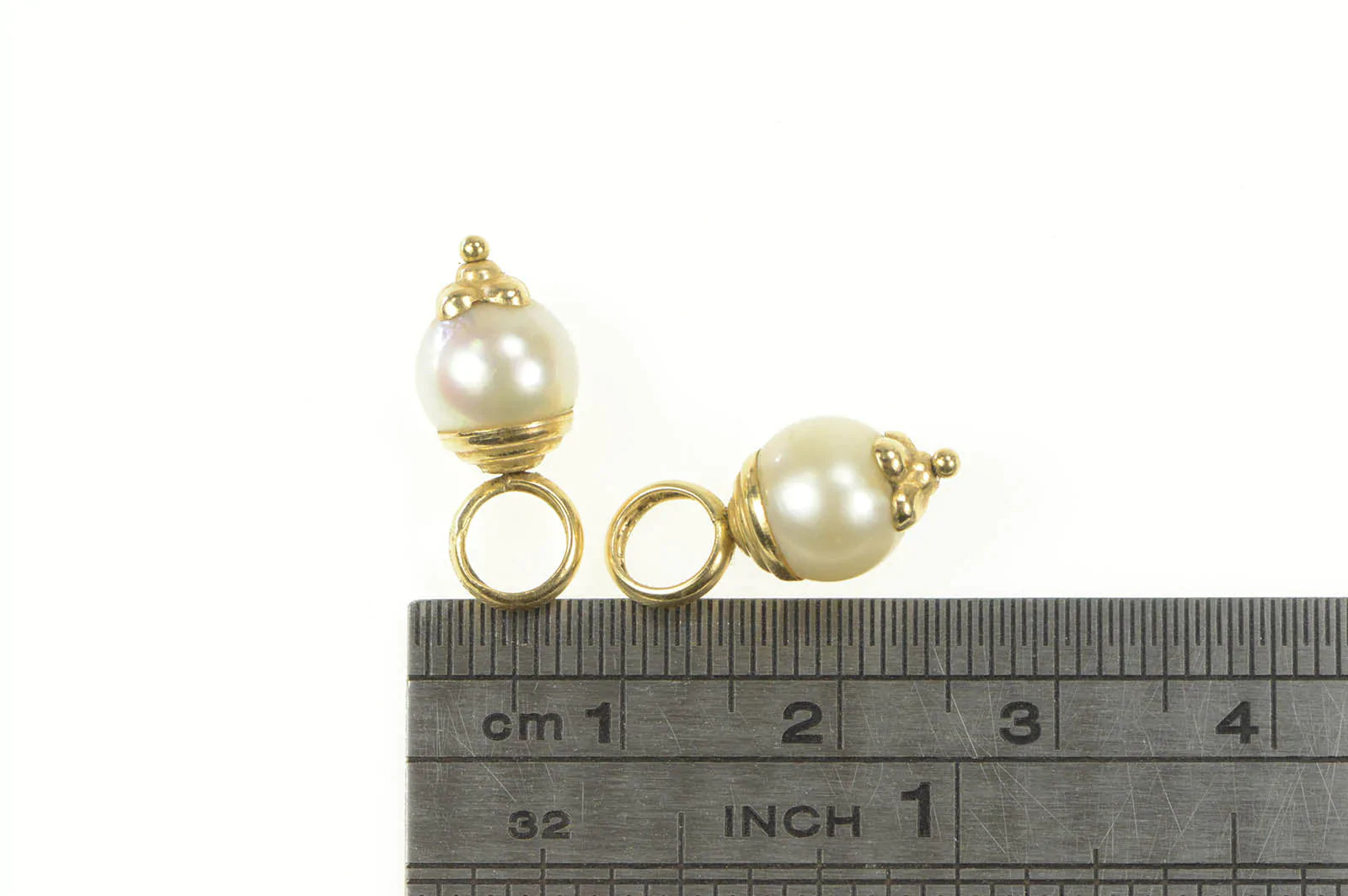 ·Item: 14K Pearl Classic Dangle Hoop Charm Accent Earrings Yellow Gold