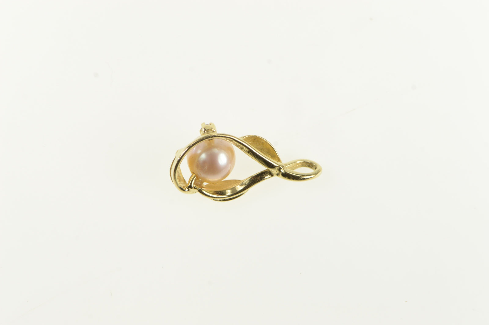 ·Item: 14K Pearl Diamond Accent Leaf Vintage Charm/Pendant Yellow Gold