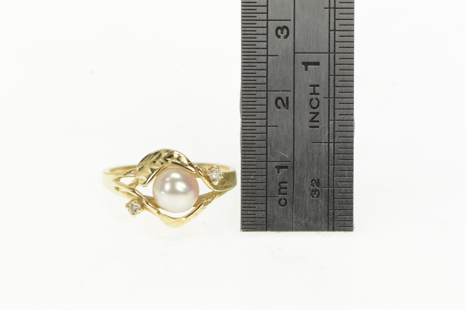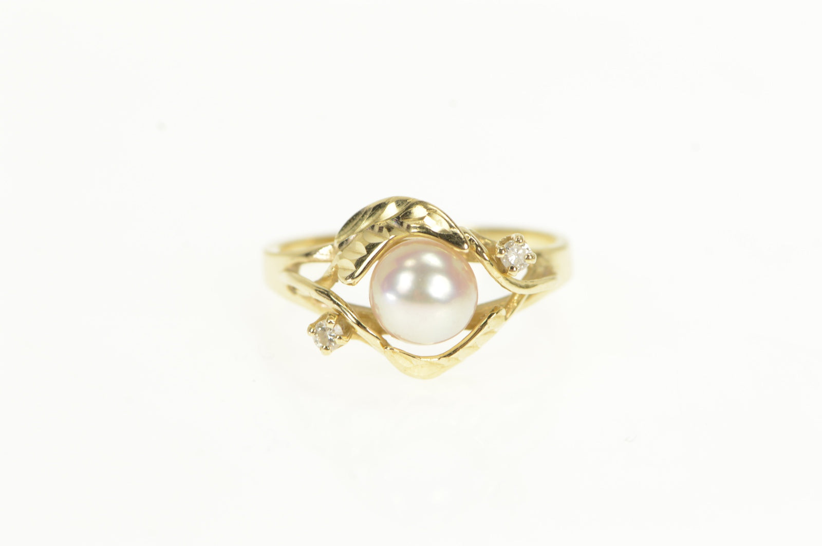 14K Pearl Diamond Accent Vintage Classic Statement Ring Yellow Gold