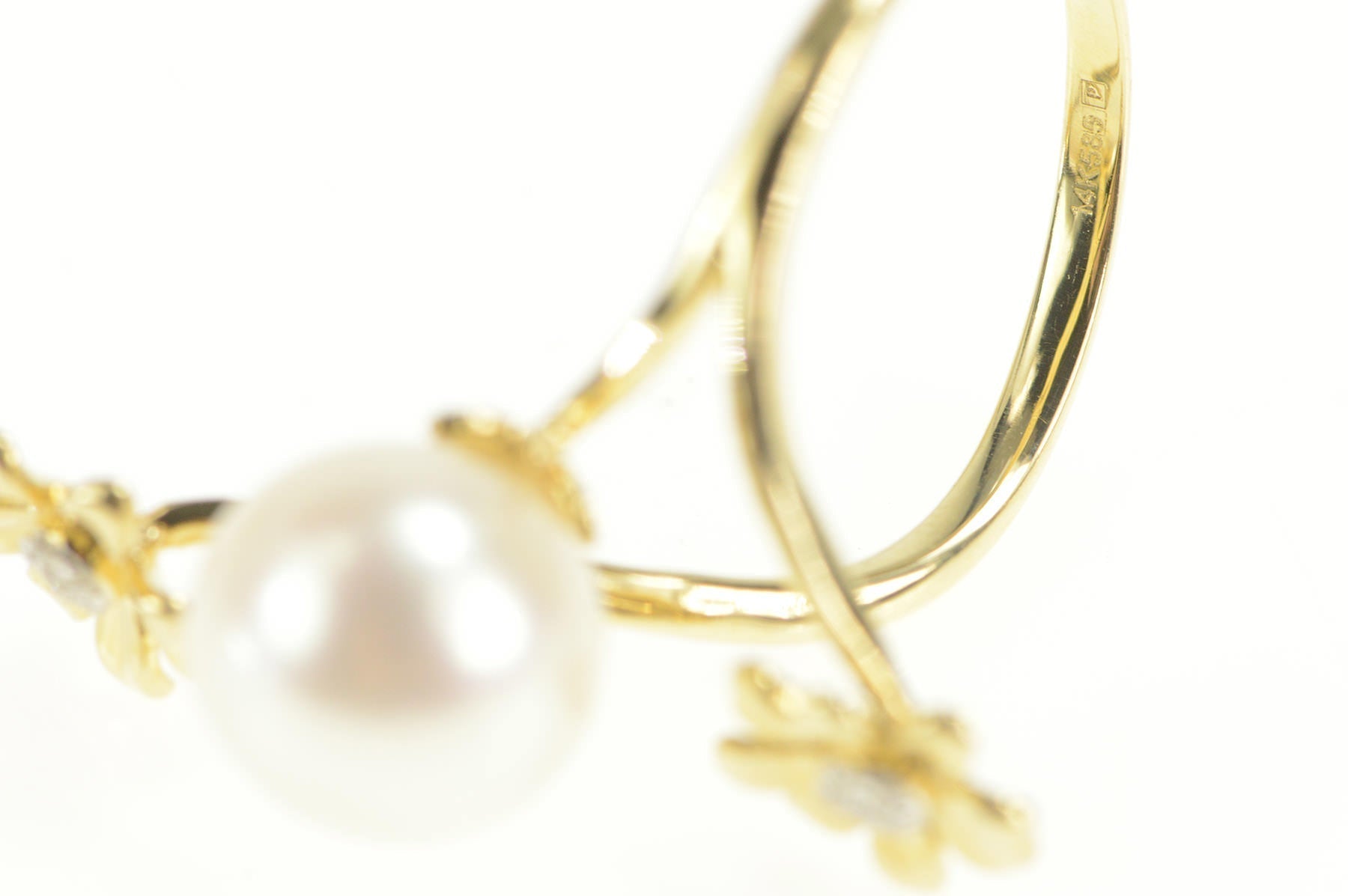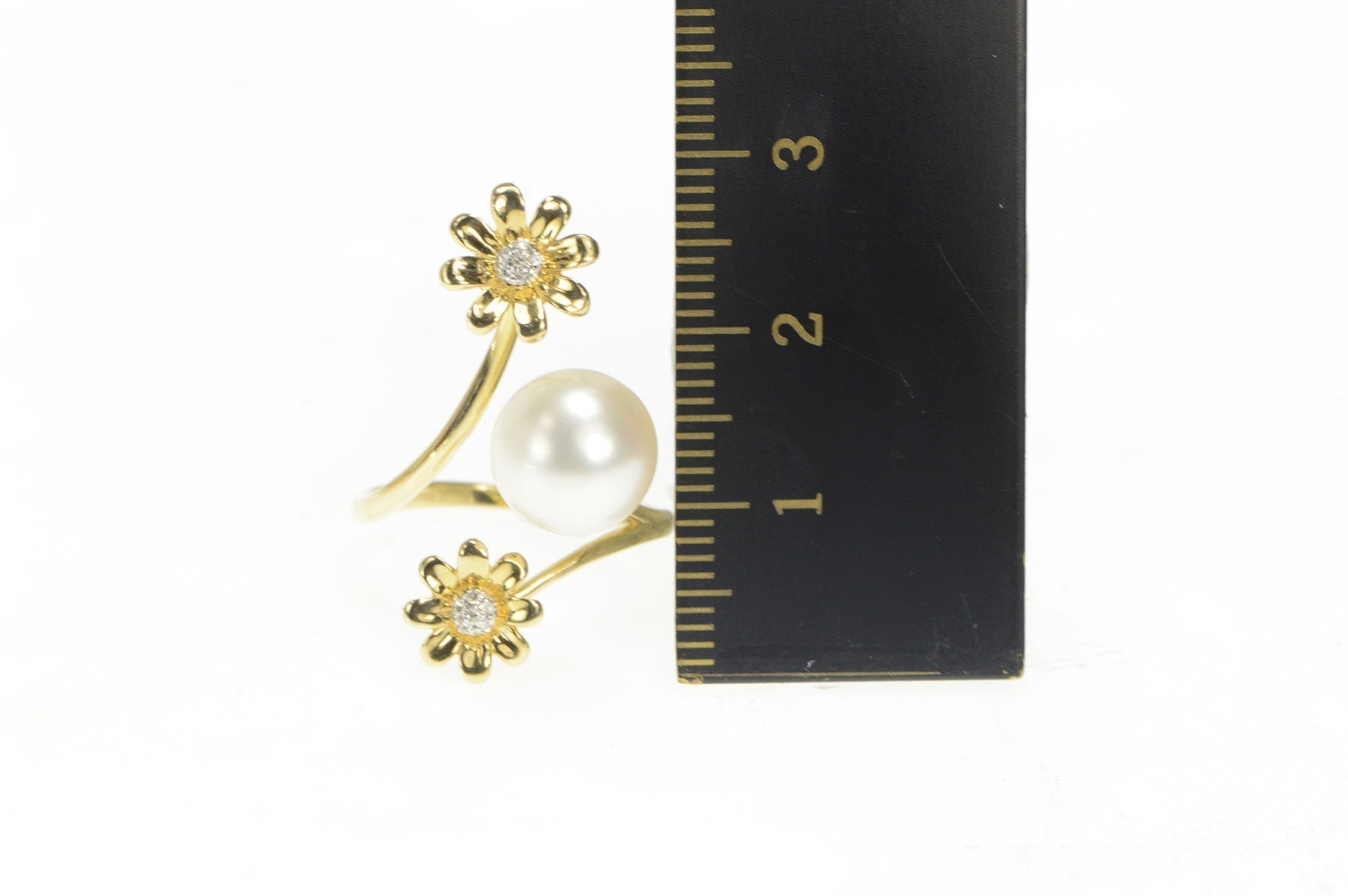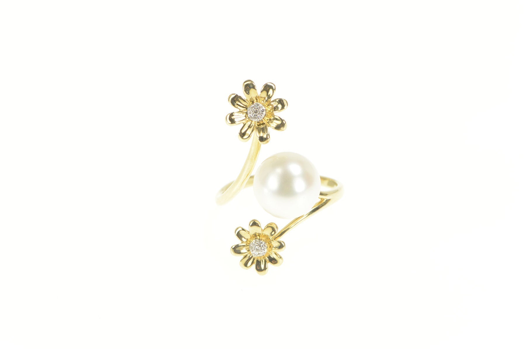 ·Item: 14K Pearl Diamond Flower Cluster Bypass Statement Ring Size 7 Yellow Gold