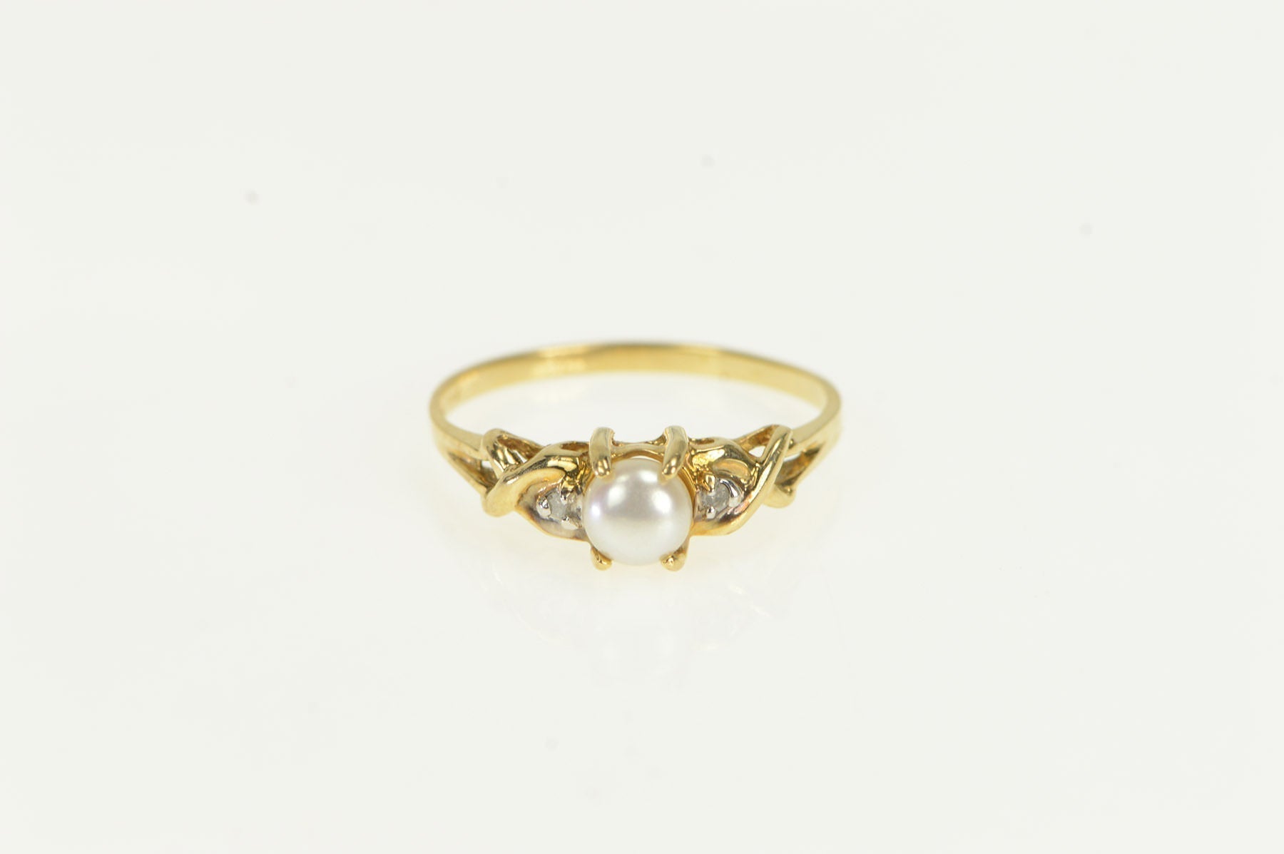 14K Pearl Diamond Vintage Classic Statement Ring Yellow Gold
