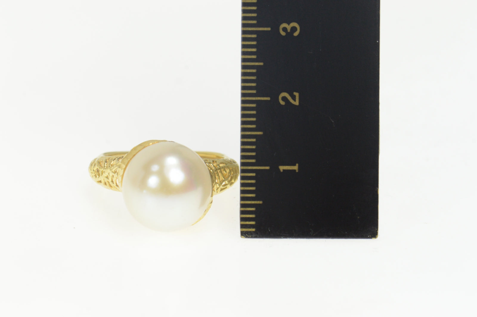 ·Item: 14K Pearl Swirl Filigree Statement Cocktail Ring Size 7.25 Yellow Gold