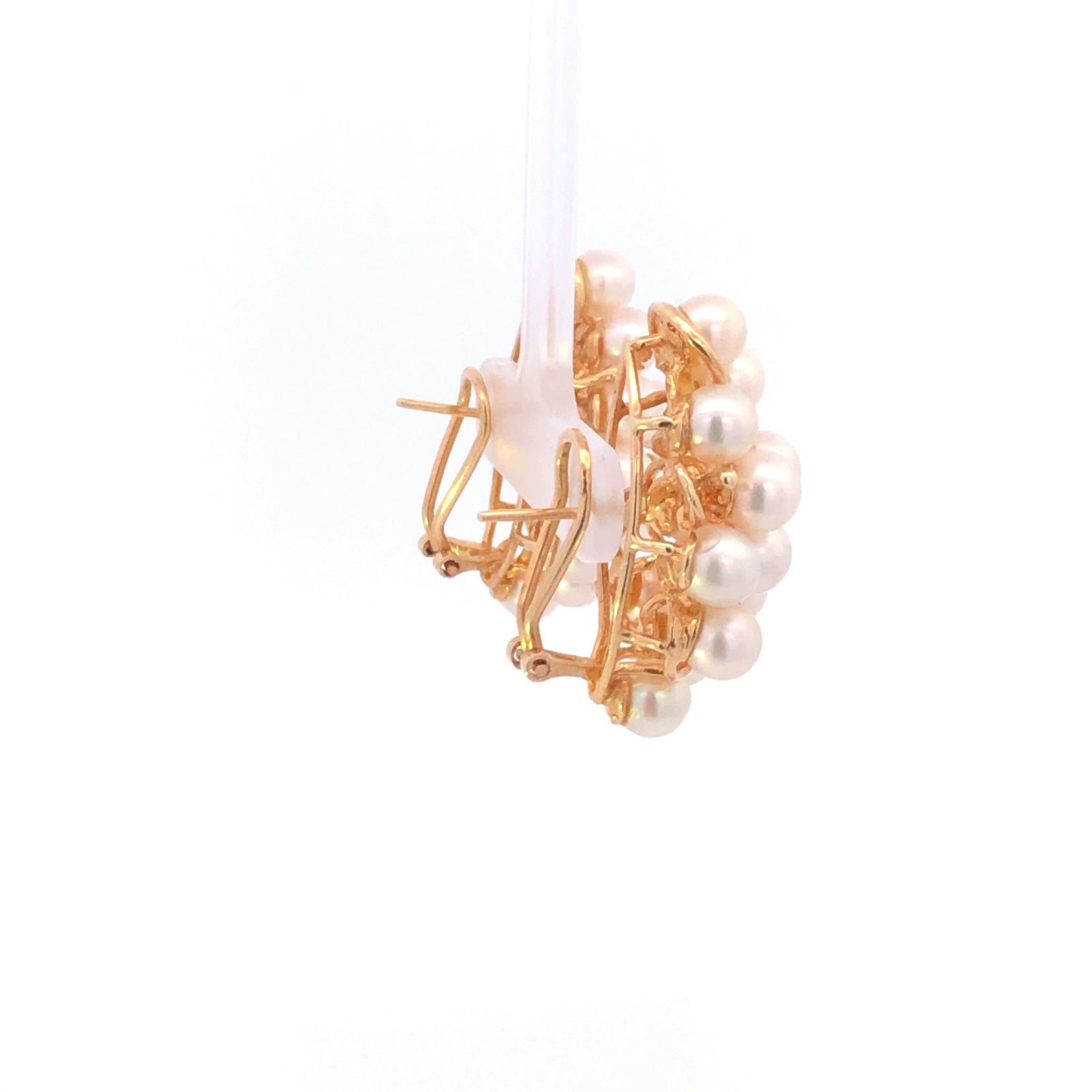 ·Item: 14K Pearl Vintage Diamond Cluster Statement Earrings Yellow Gold