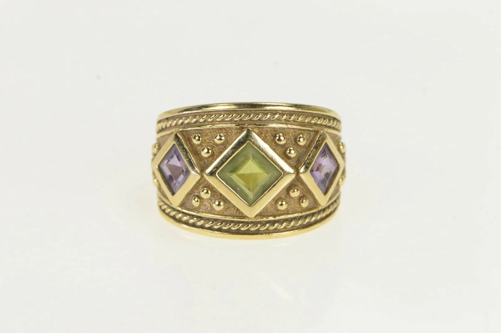 14K Peridot Amethyst Etruscan Revival Band Ring Yellow Gold