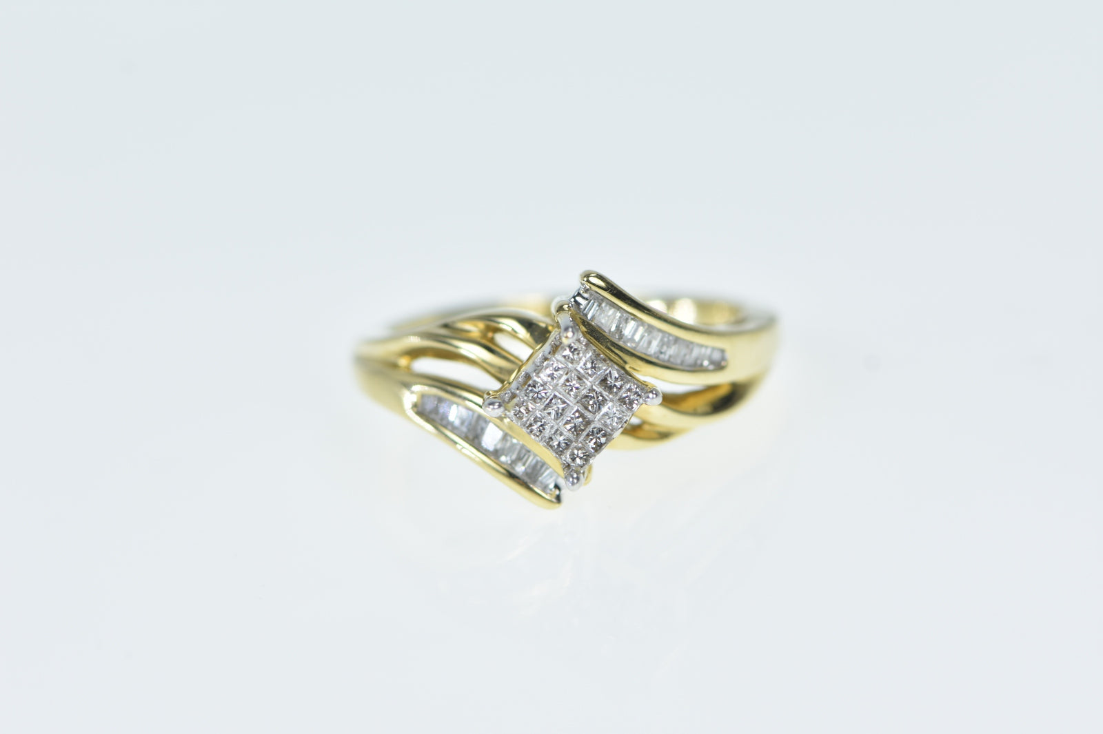 ·Item: 14K Princess Diamond Cluster Bypass Ring Size 7.25 Yellow Gold