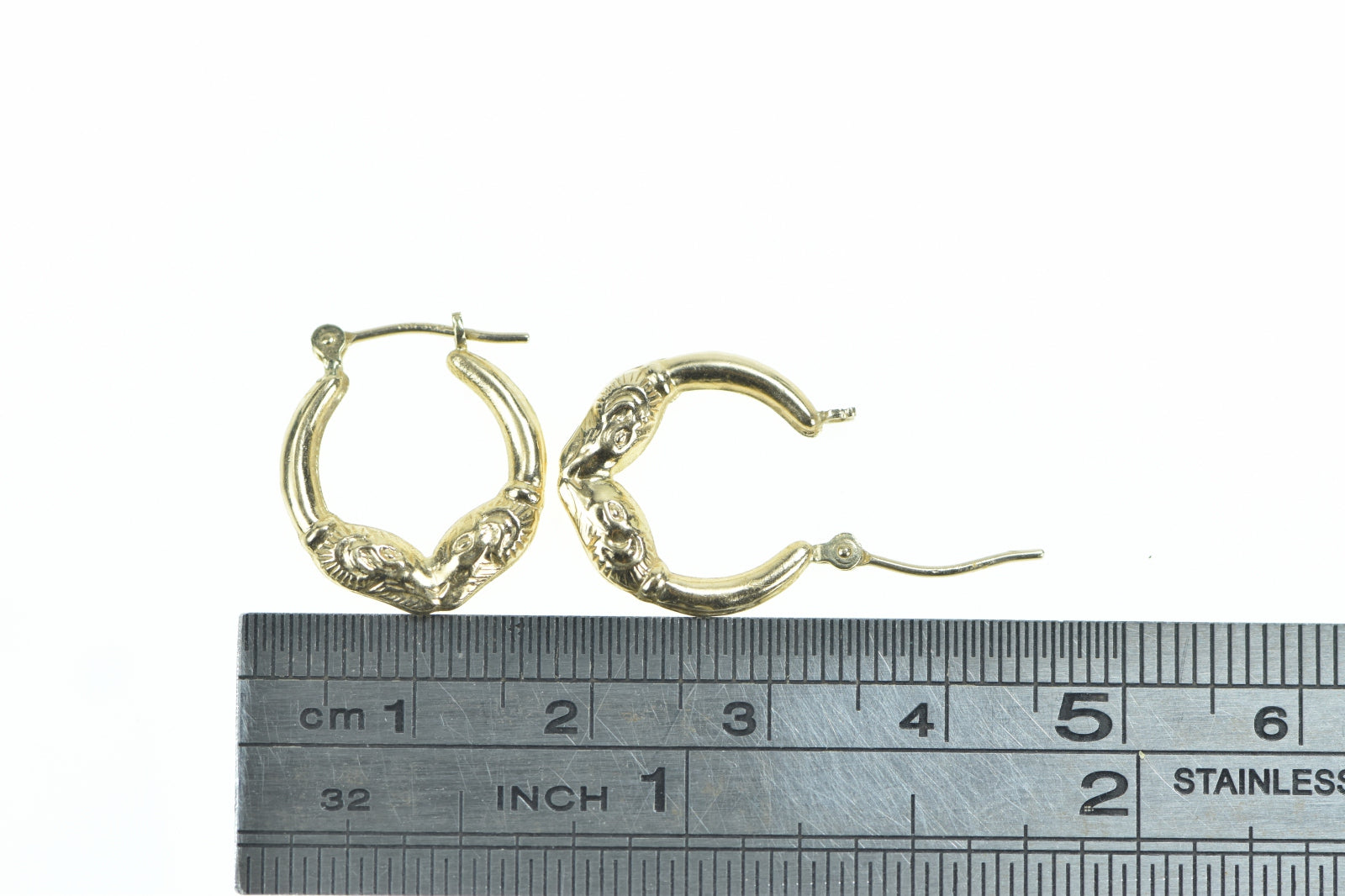 ·Item: 14K Ram Head Aries Zodiac Sign Puffy Hoop Earrings Yellow Gold