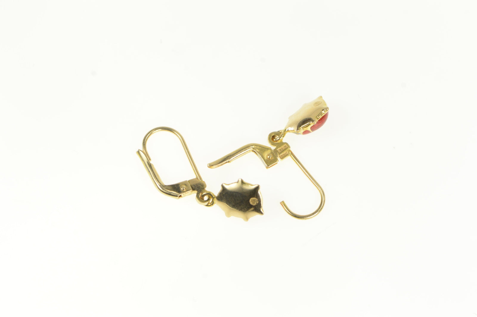 ·Item: 14K Red Enamel Ladybug Charm Dangle Vintage Earrings Yellow Gold