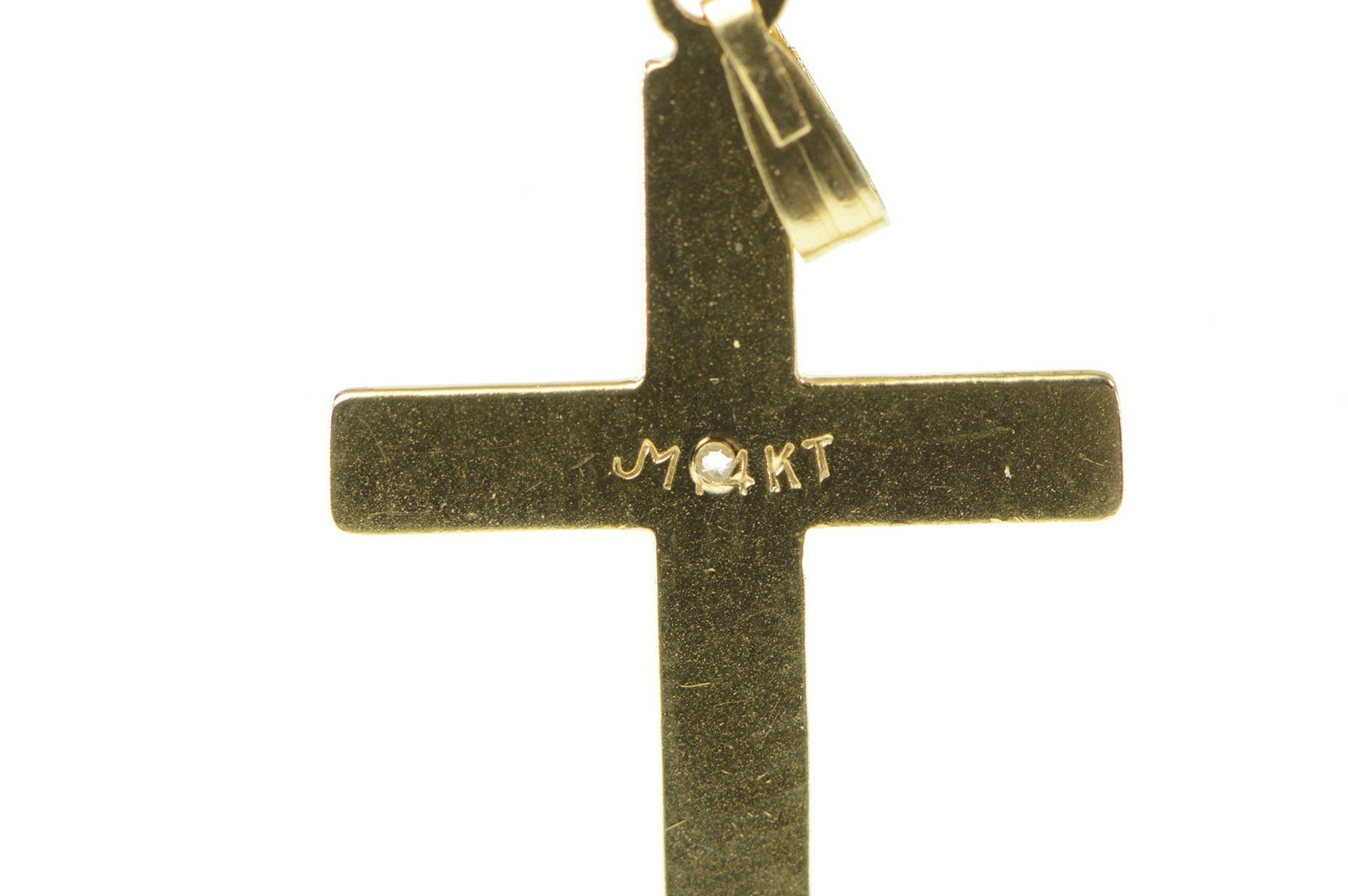 ·Item: 14K Retro Classic Diamond Inset Cross Christian Pendant Yellow Gold