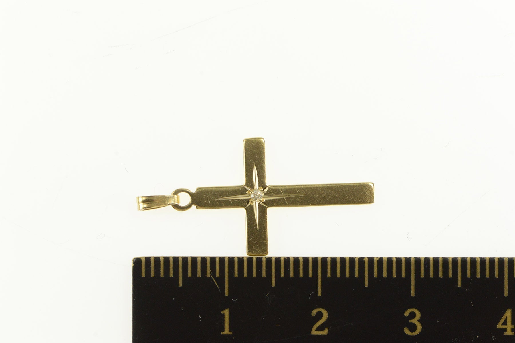 14K Retro Classic Diamond Inset Cross Christian Pendant Yellow Gold