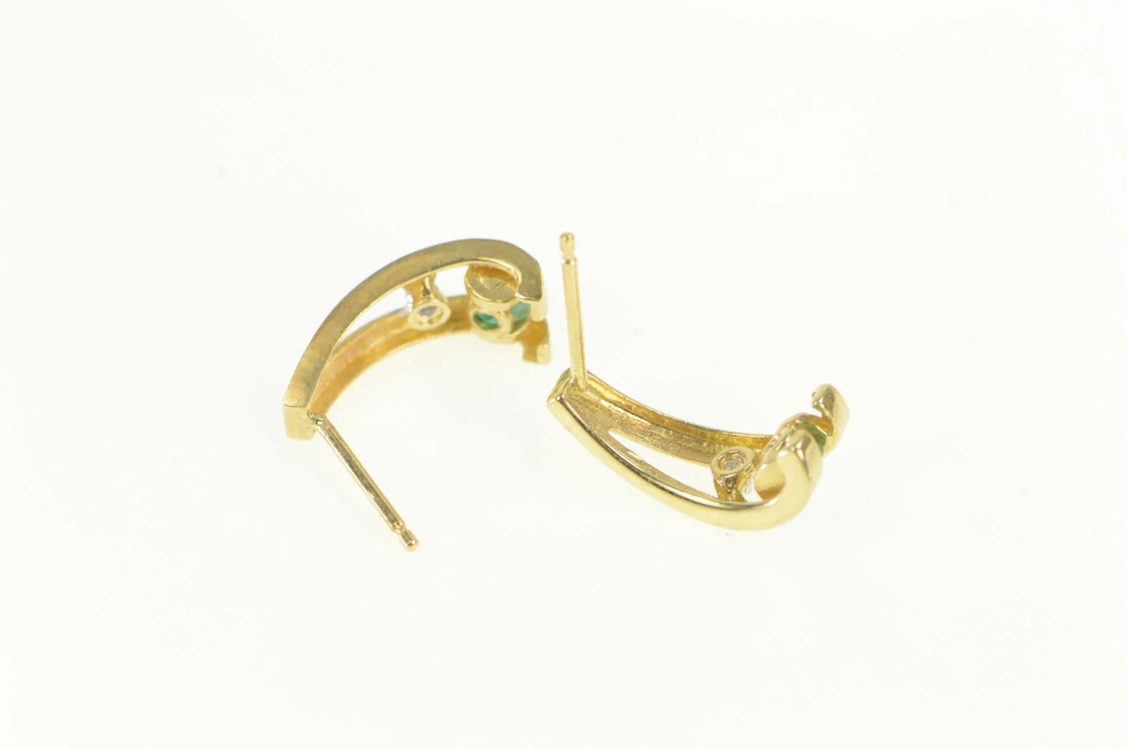 ·Item: 14K Retro Diamond Emerald Split Curved Hoop Earrings Yellow Gold