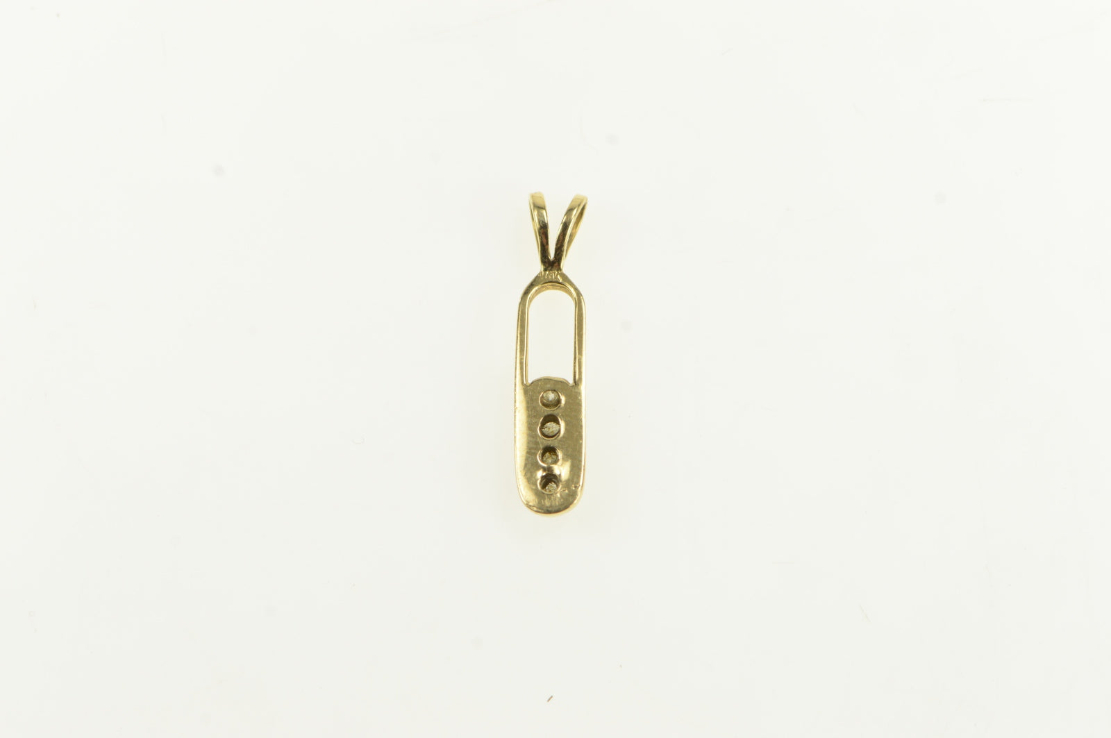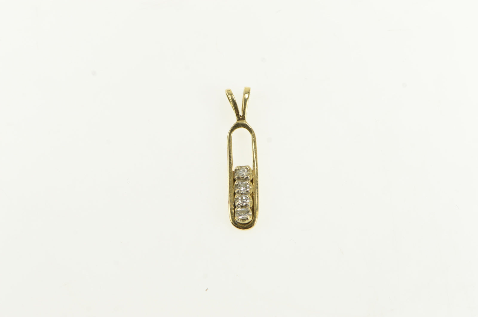 14K Retro Diamond Vertical Bar Vintage Statement Pendant Yellow Gold