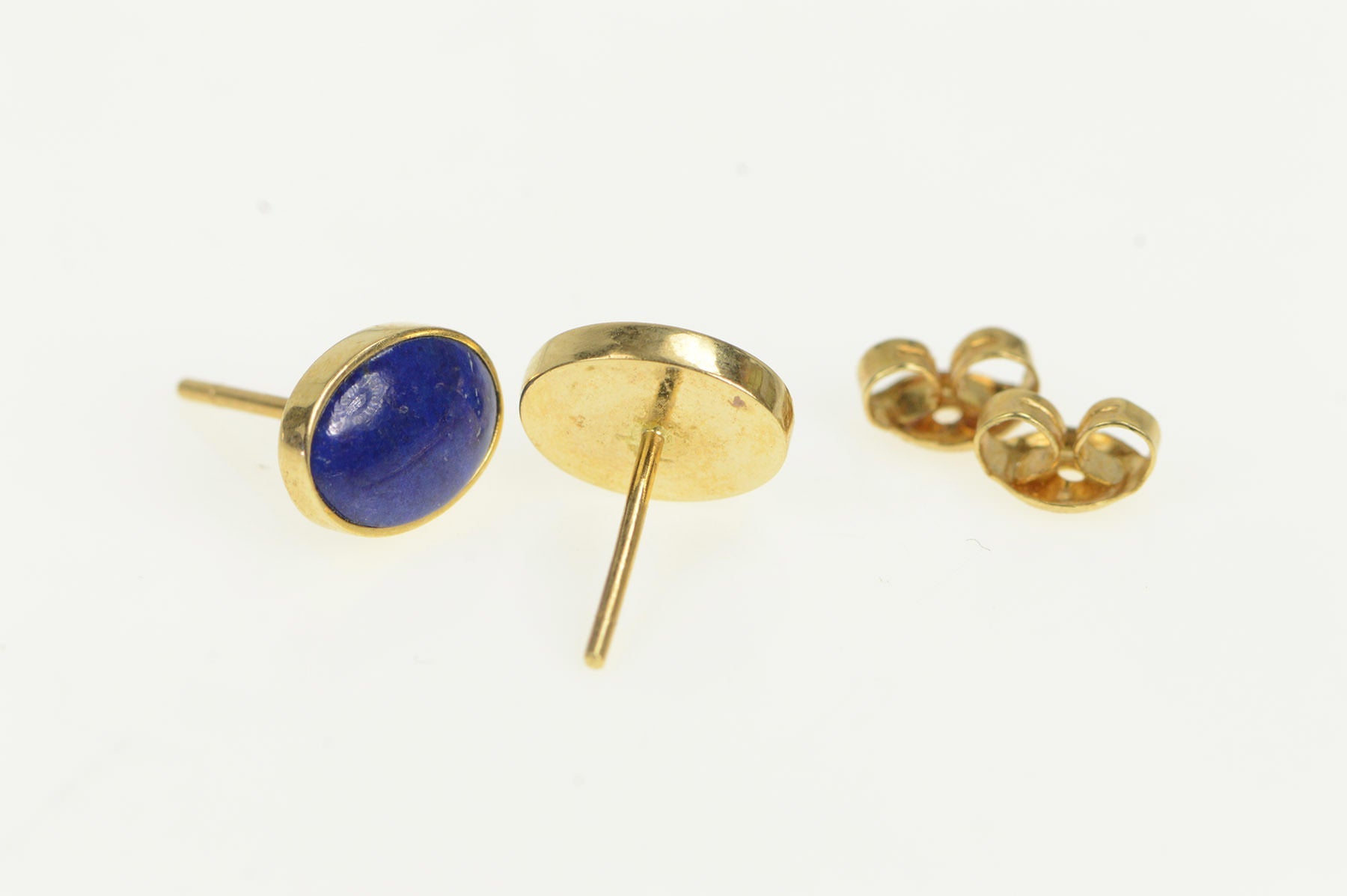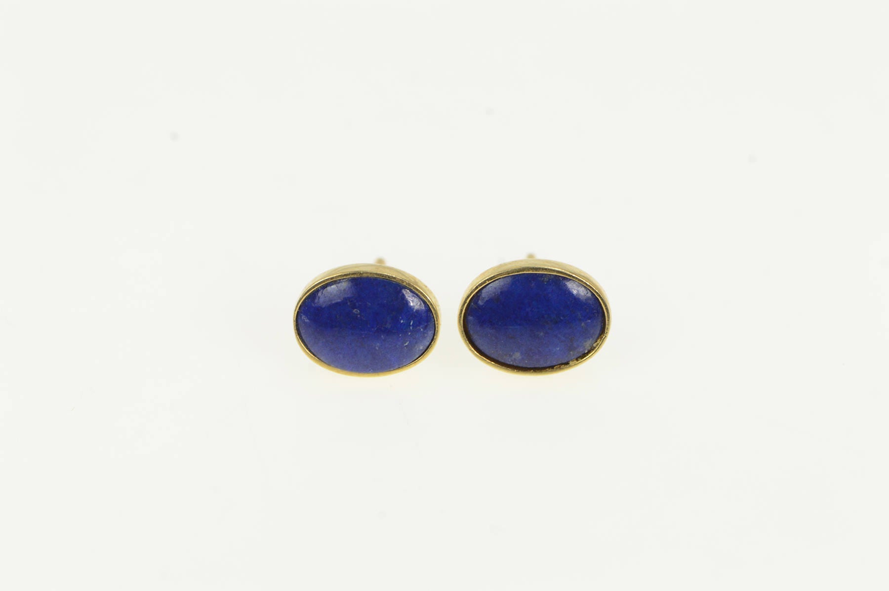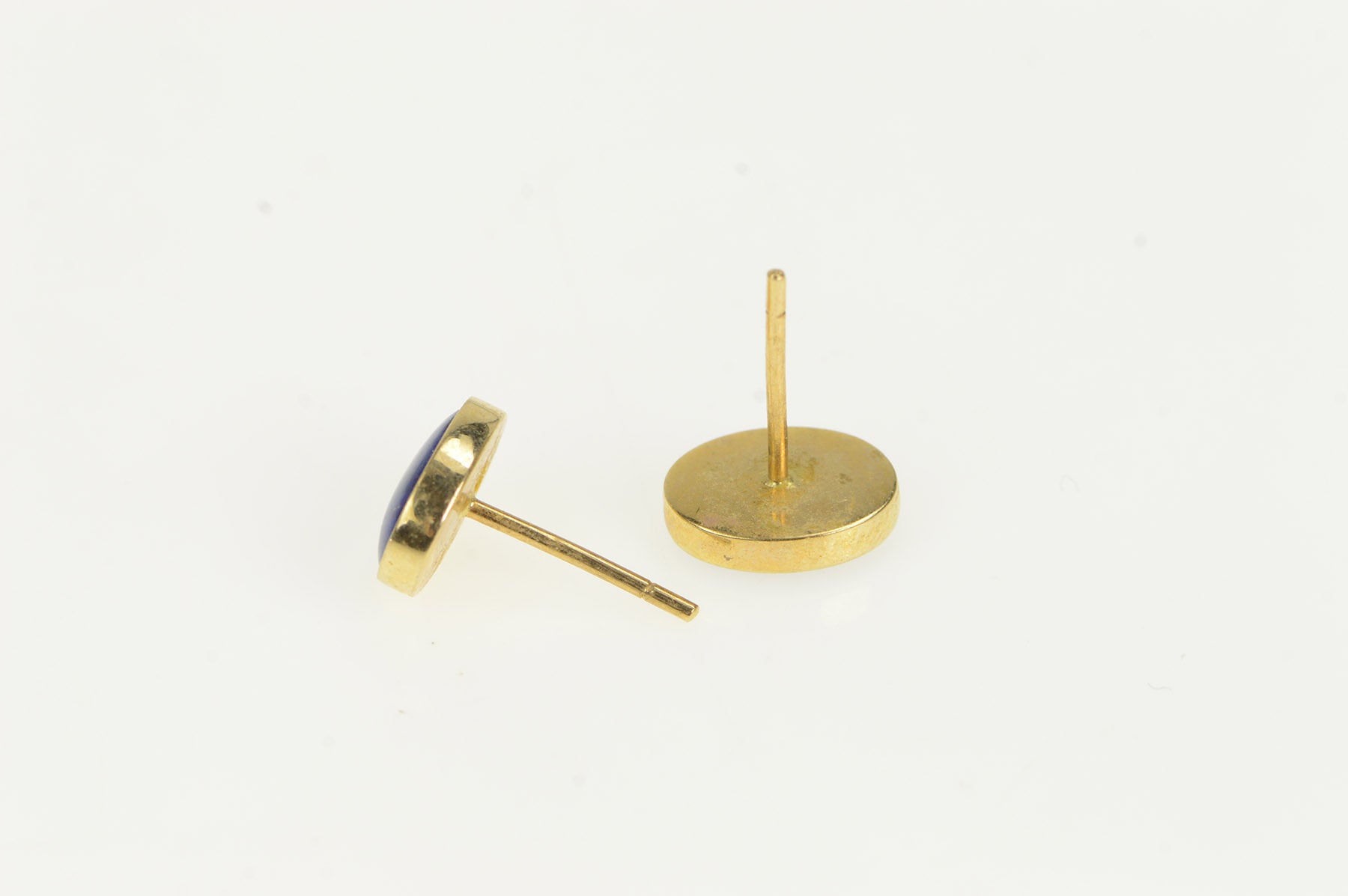 ·Item: 14K Retro Oval Lapis Lazuli Inlav Vintage Stud Earrings Yellow Gold
