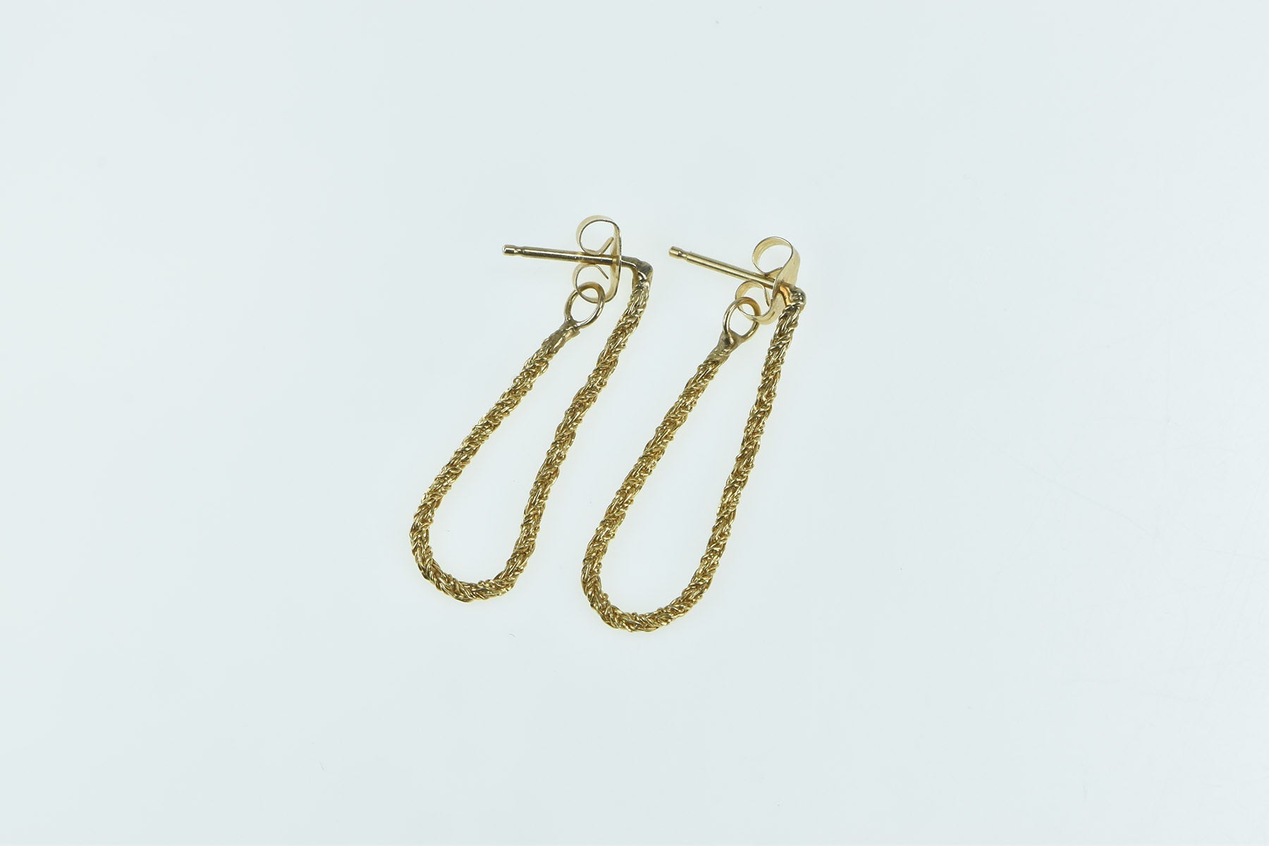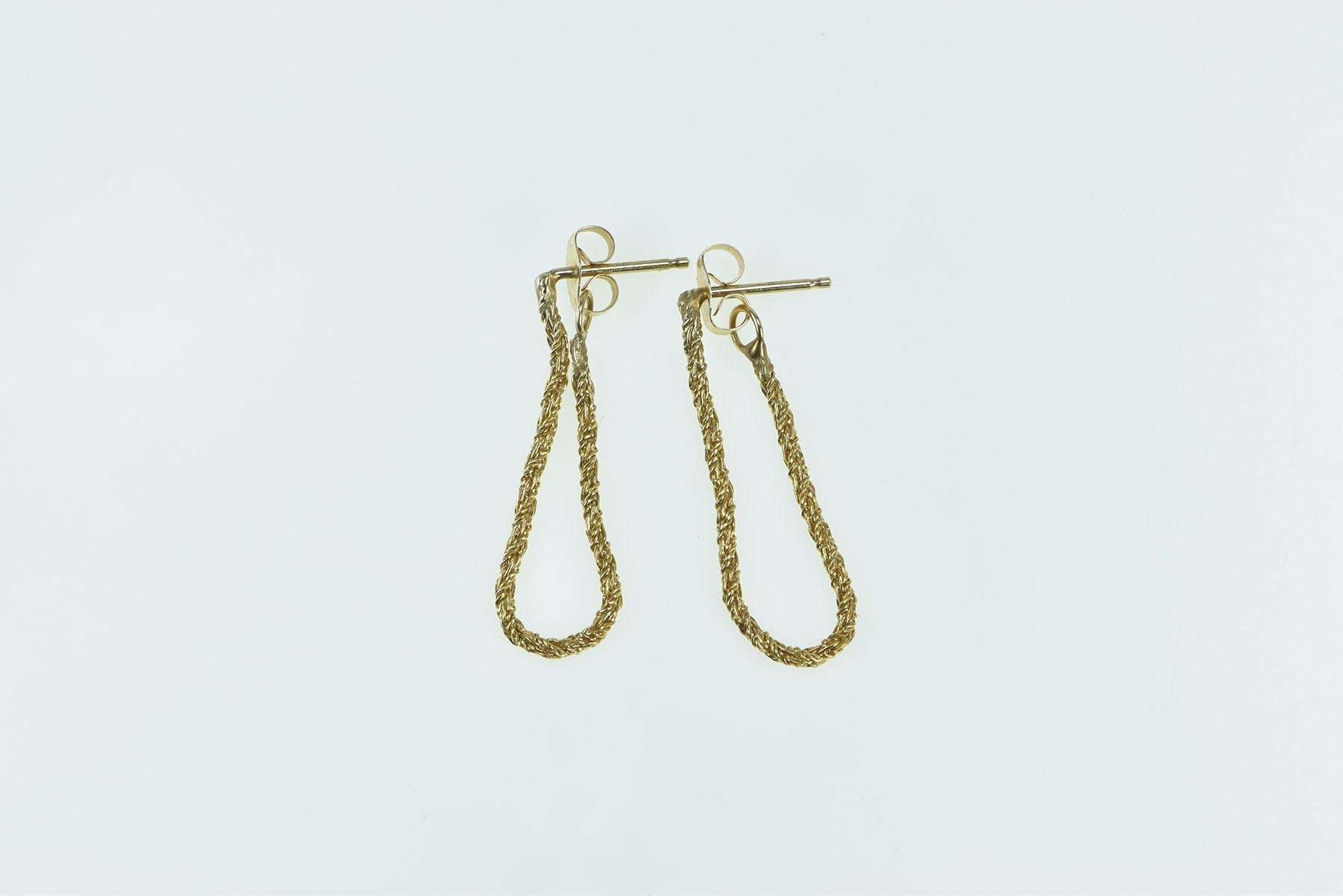14K Rope Chain Vintage Dangle Hoop Earrings Yellow Gold