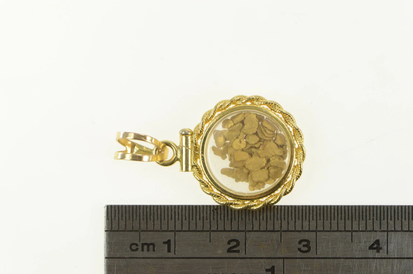 ·Item: 14K Rope Trim Gold Nugget Raw Pebble Capsule Charm/Pendant Yellow Gold