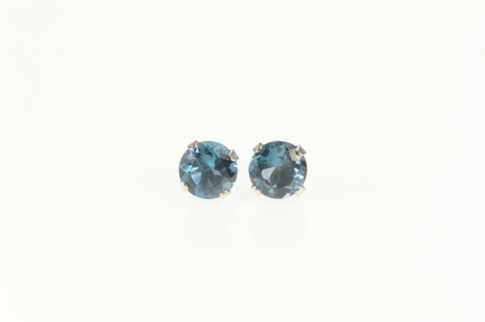 ·Item: 14K Round Blue Topaz Solitaire Classic Stud Earrings White Gold