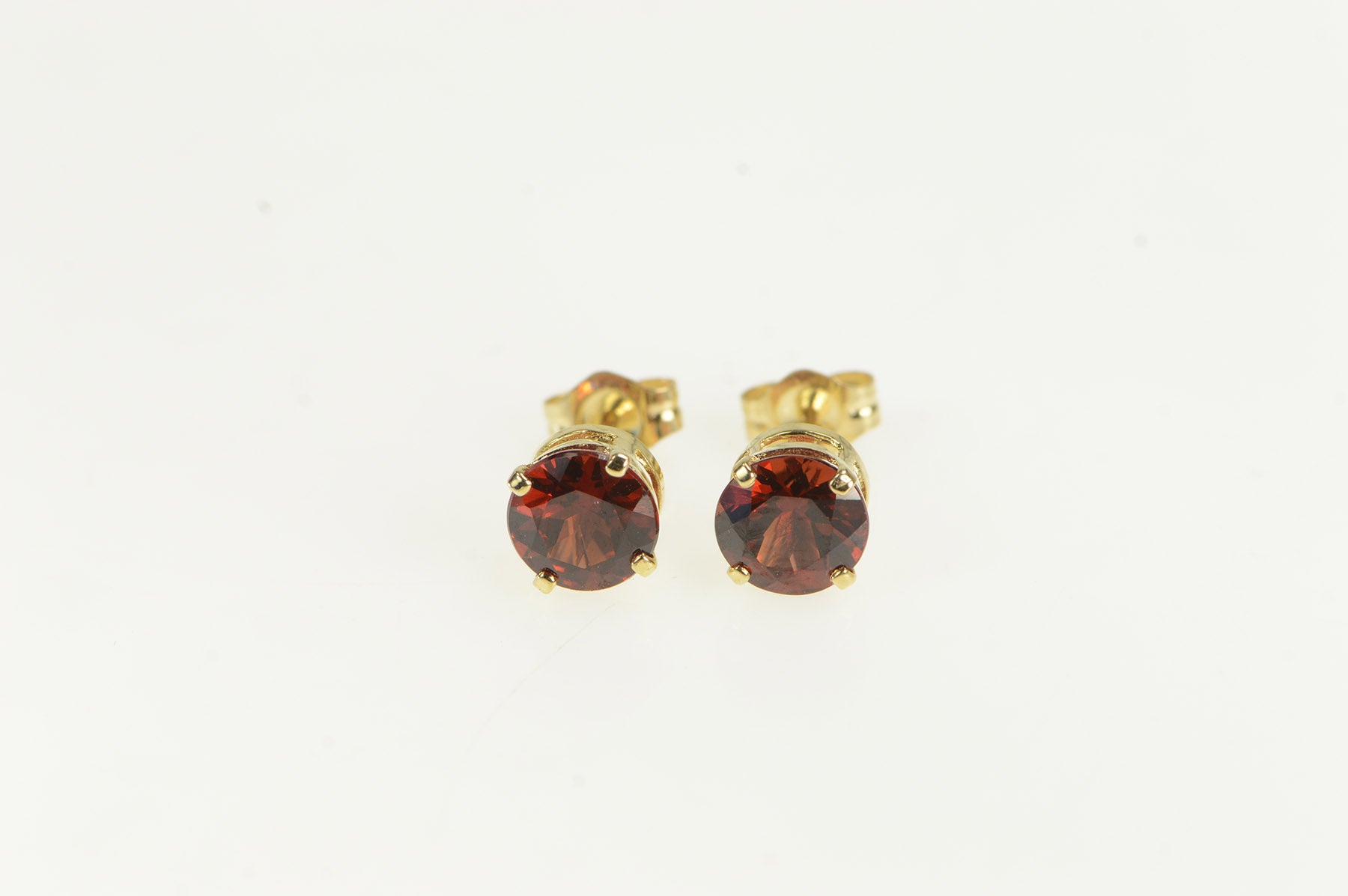 ·Item: 14K Round Garnet Vintage Solitaire Stud Earrings Yellow Gold