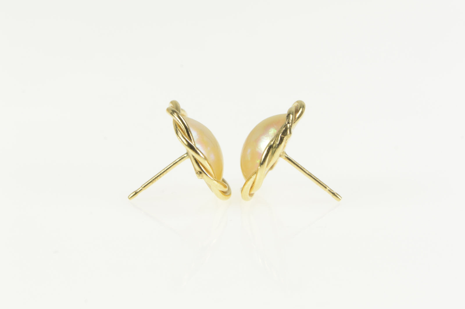 ·Item: 14K Round Pearl Twist Trim Statement Stud Earrings Yellow Gold