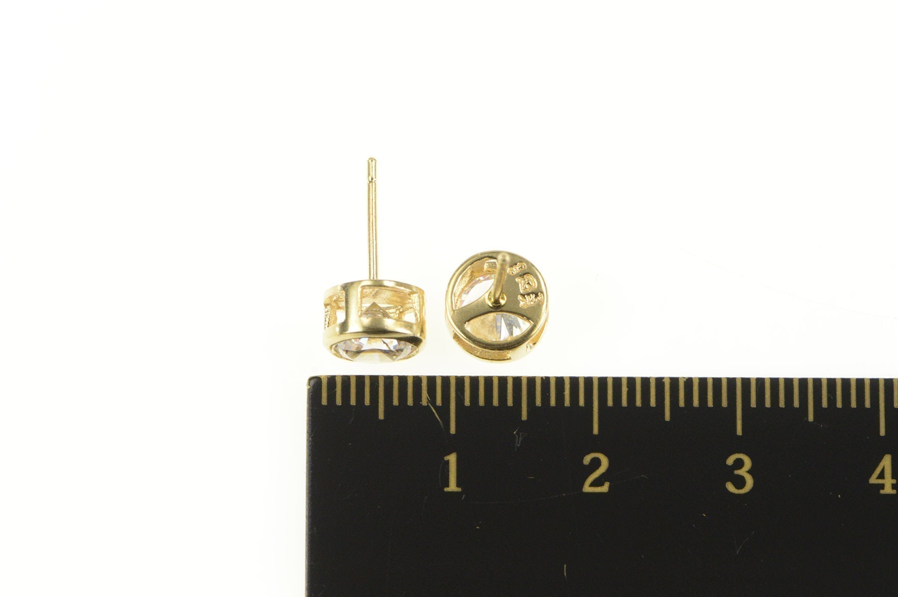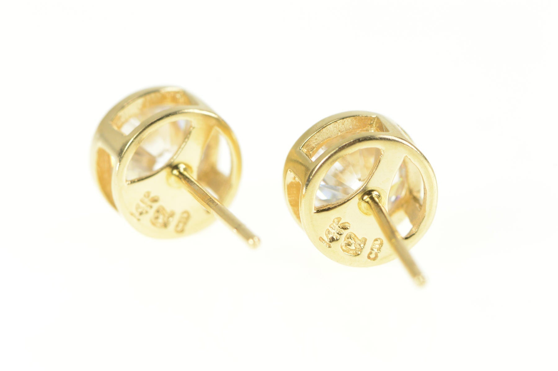 14K Round Solitaire Simple CZ Stud Classic Earrings Yellow Gold
