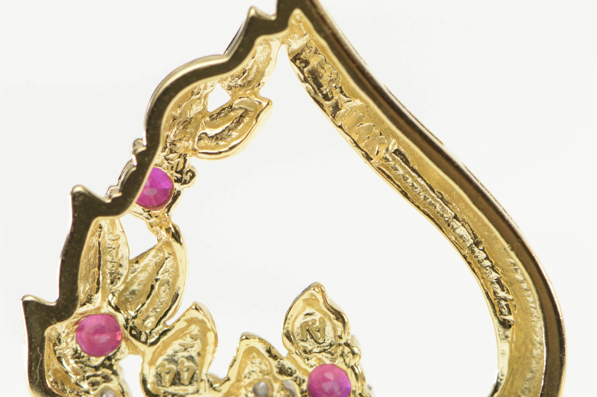 14K Ruby Diamond Cluster Heart Love Symbol Pendant Yellow Gold