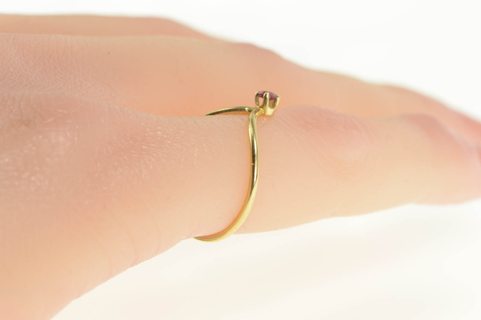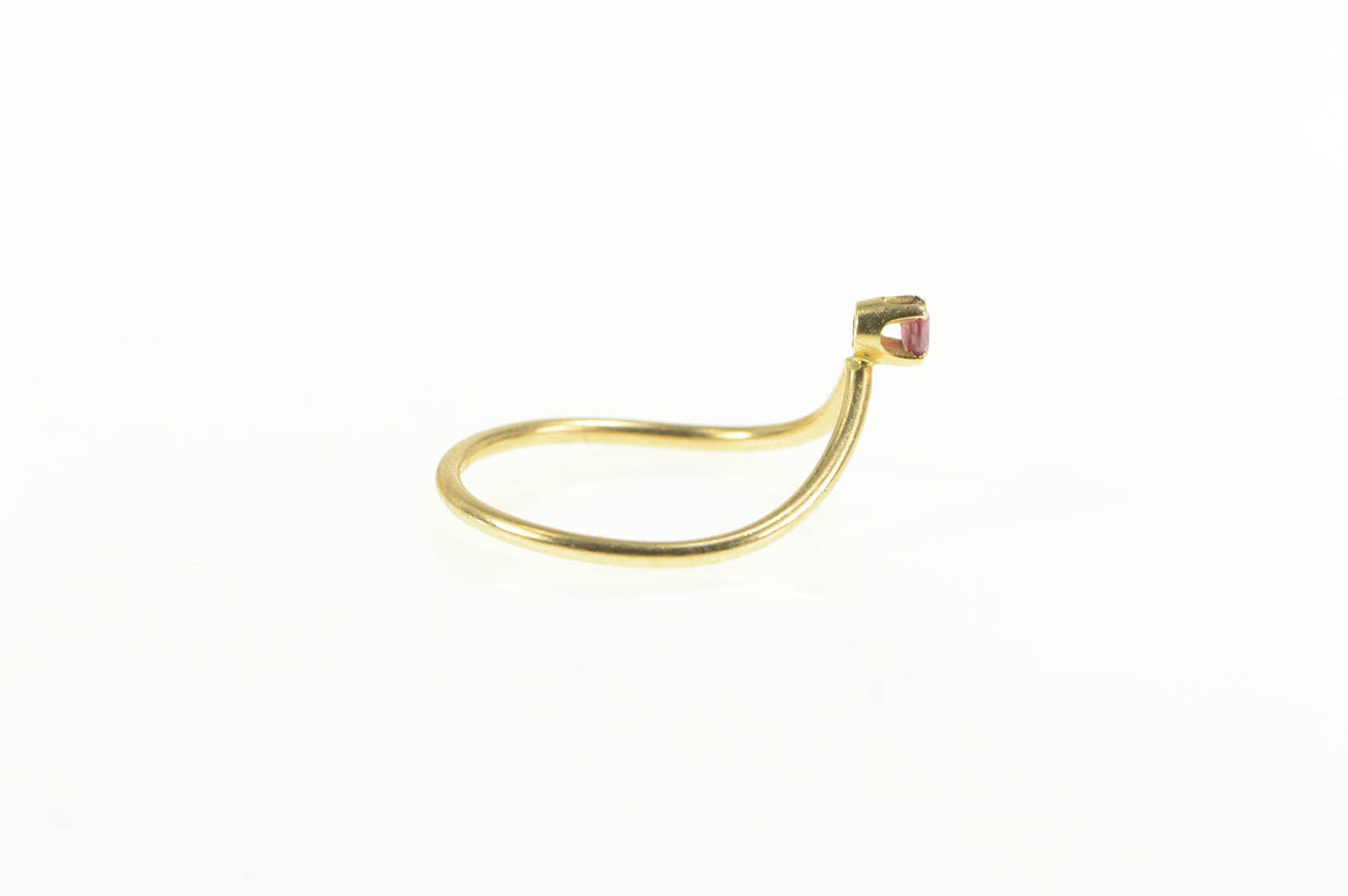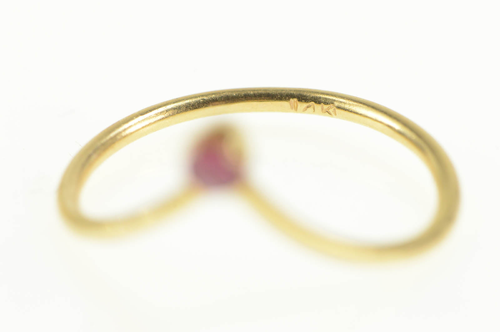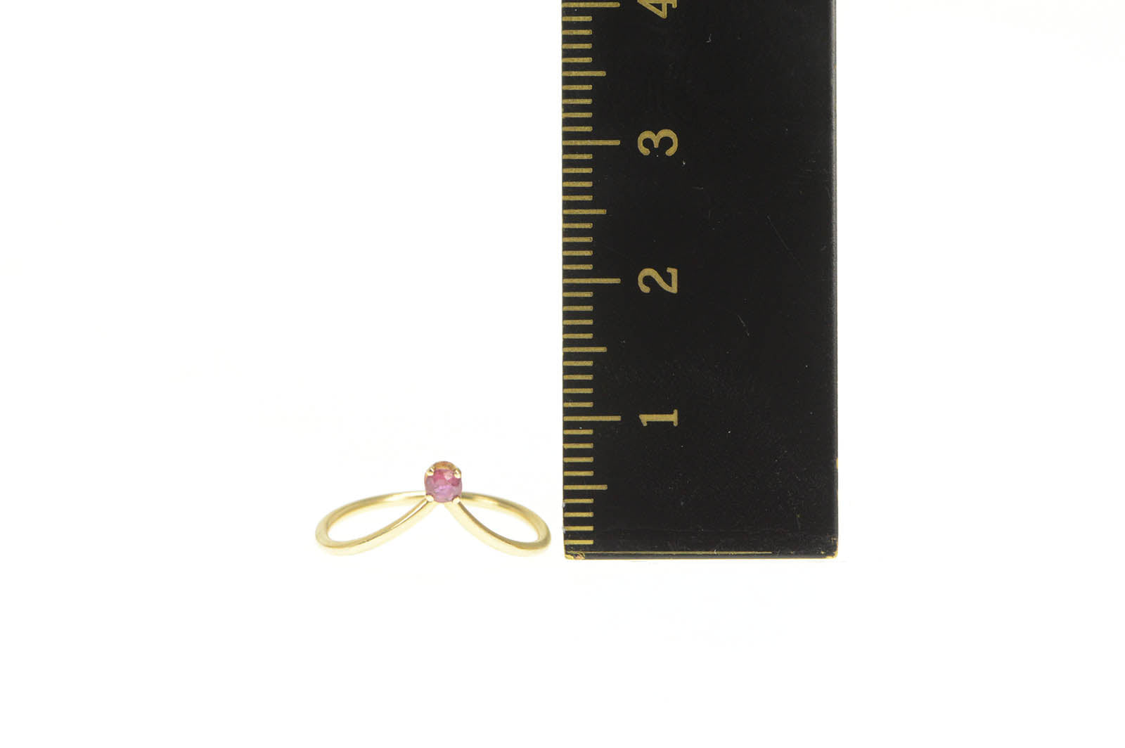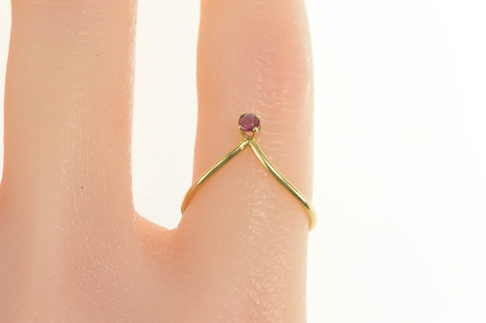 ·Item: 14K Ruby Solitaire Chevron Pointed Stackable Ring Size 4.25 Yellow Gold