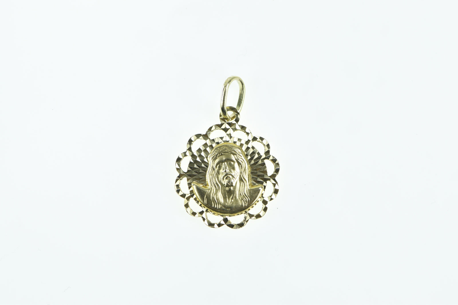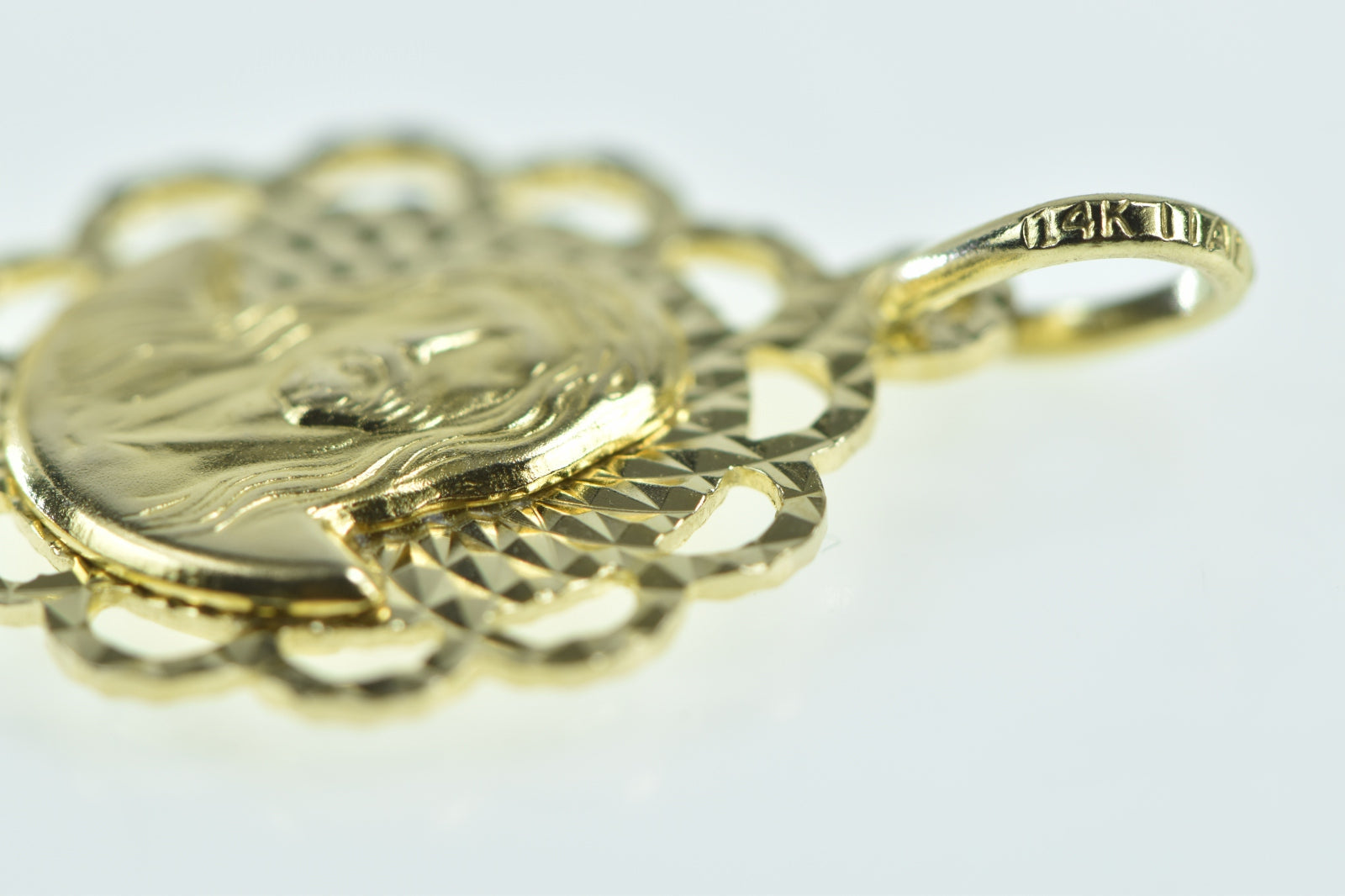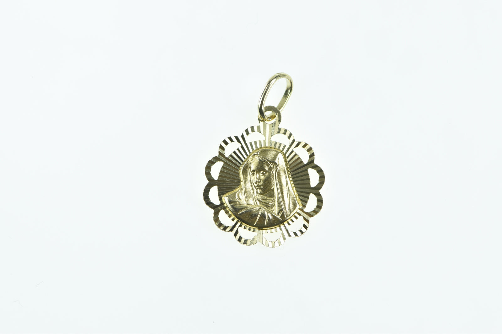 ·Item: 14K Scalloped Virgin Mary Baby Jesus Christ Charm/Pendant Yellow Gold