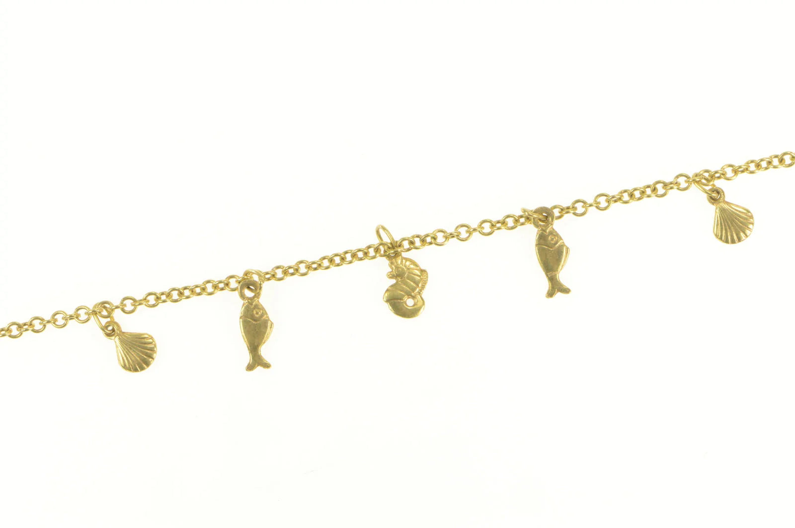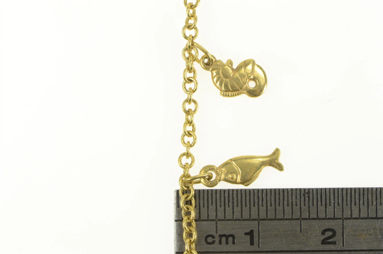 ·Item: 14K Sea Shell Fish Ocean Motif Chain Anklet Bracelet 9.5" Yellow Gold
