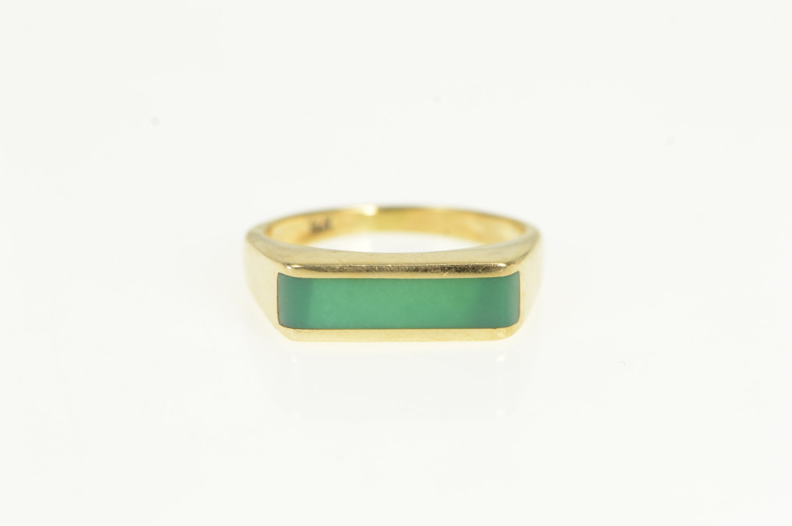 ·Item: 14K Squared Aventurine Inlay Stackable Statement Ring Size 5 Yellow Gold