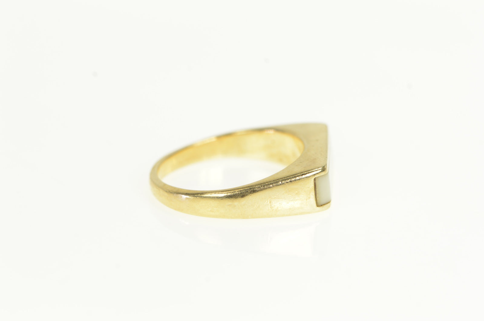 ·Item: 14K Squared Mother of Pearl Inlay Stackable Ring Size 5 Yellow Gold