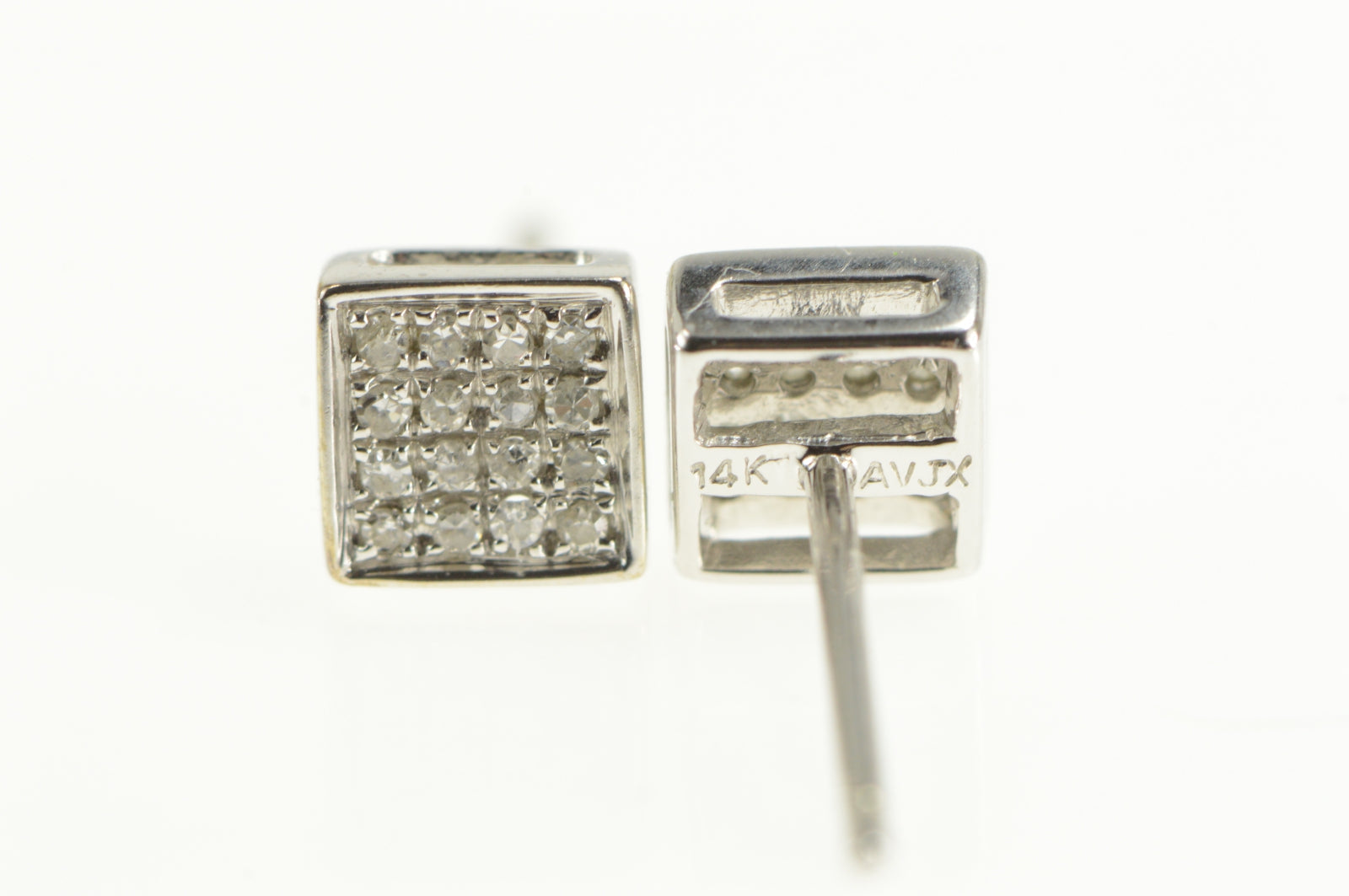 ·Item: 14K Squared Pave Diamond Cluster Stud Earrings White Gold