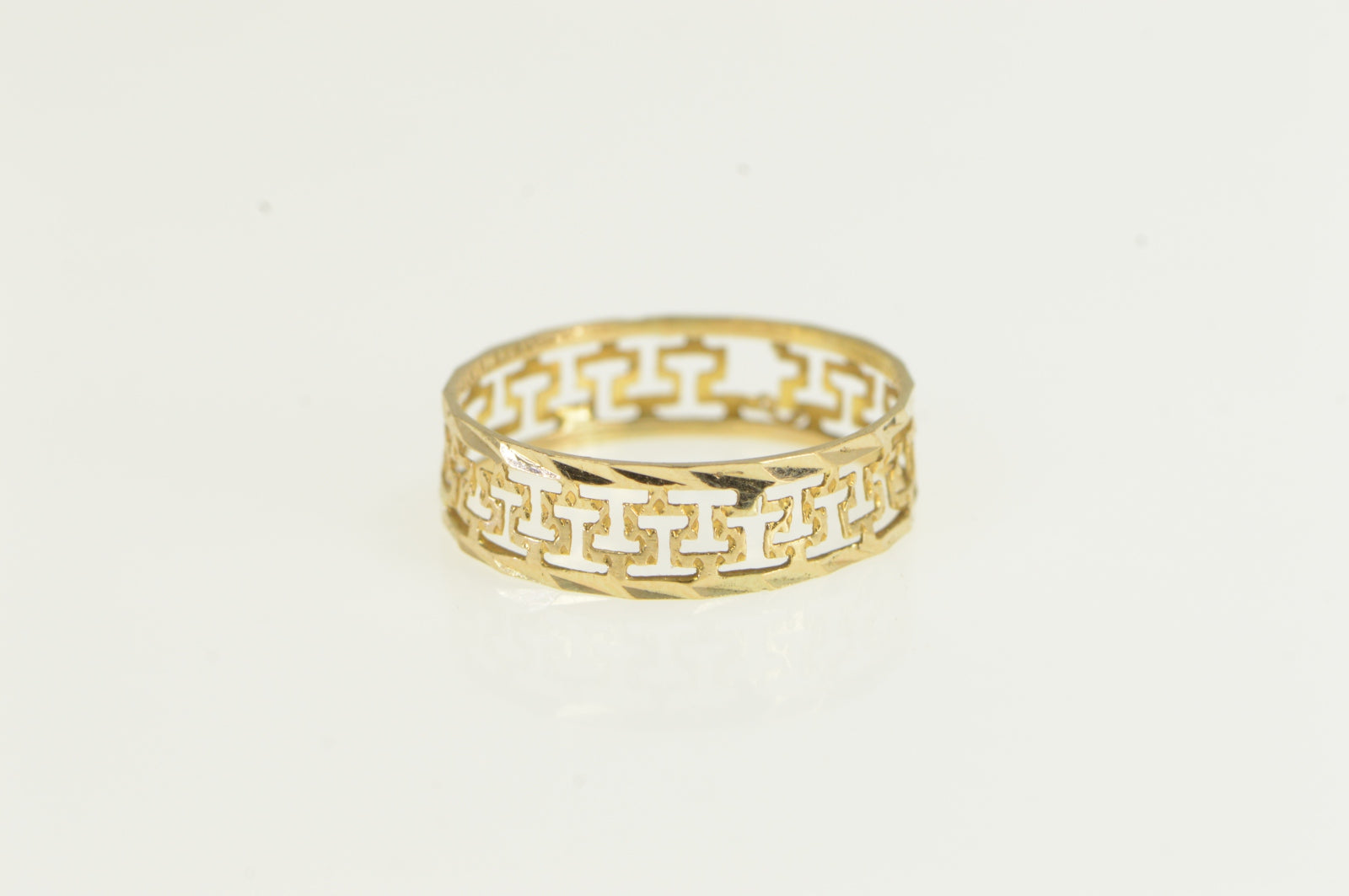 ·Item: 14K Textured Square Wave Pattern Cut Out Band Ring Size 6.25 Yellow Gold