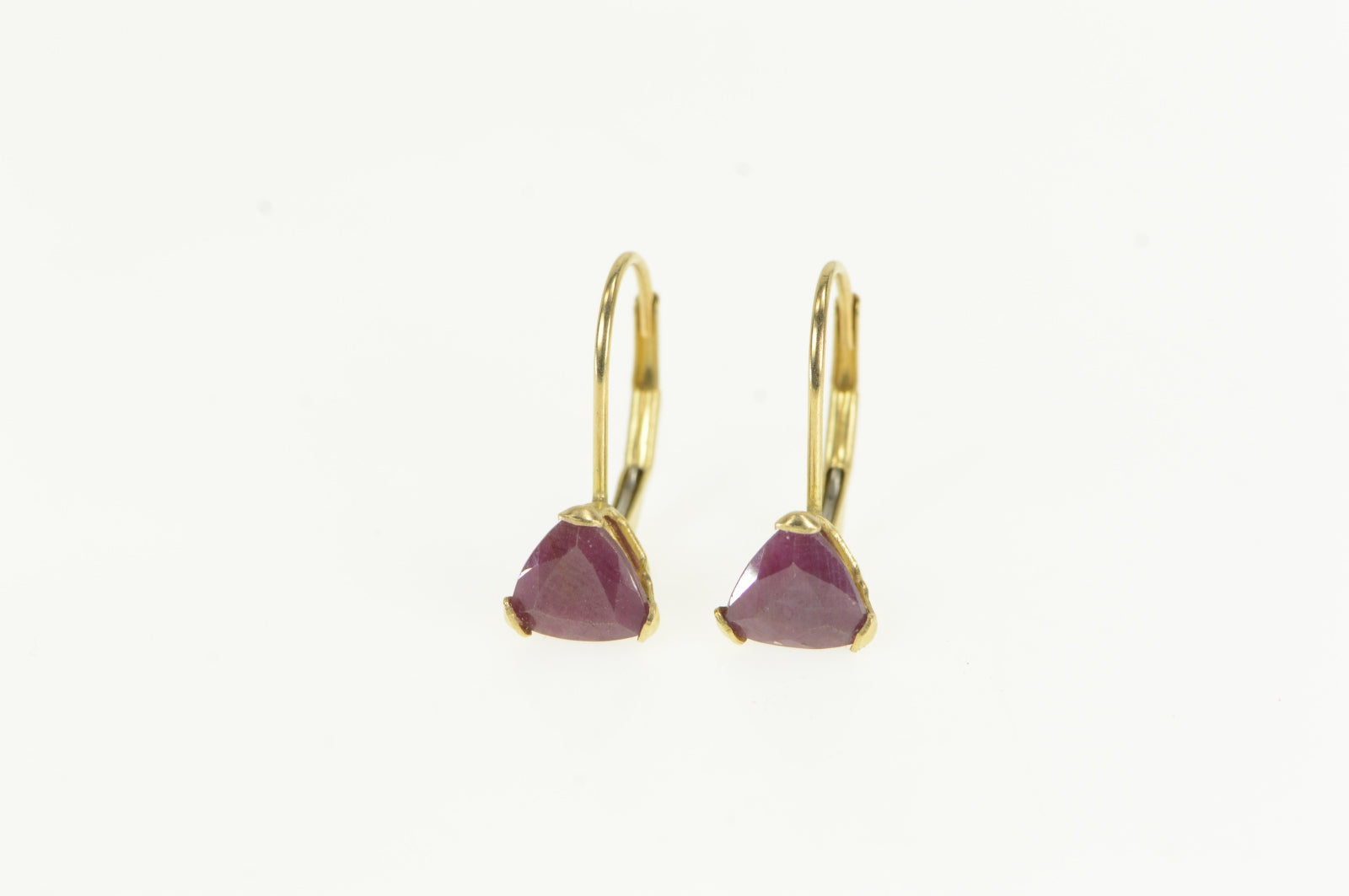 ·Item: 14K Trillion Ruby Solitaire Lever Back Vintage Earrings Yellow Gold