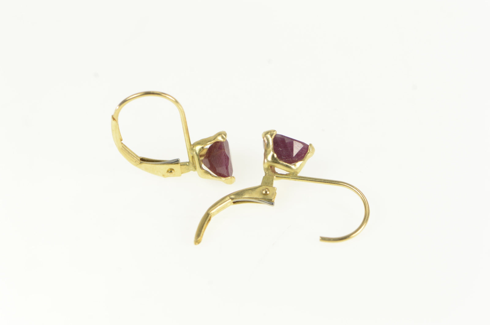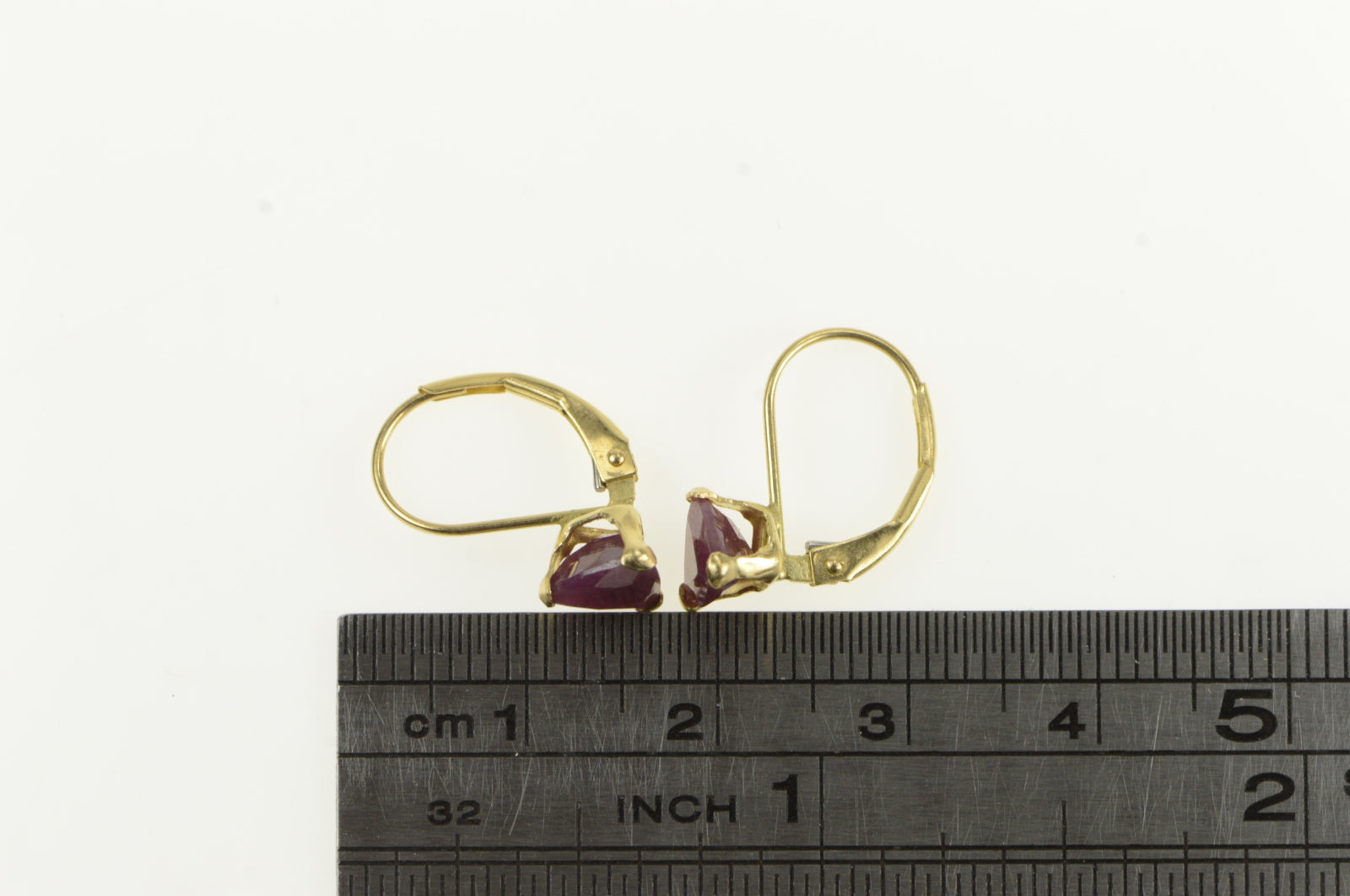14K Trillion Ruby Solitaire Lever Back Vintage Earrings Yellow Gold