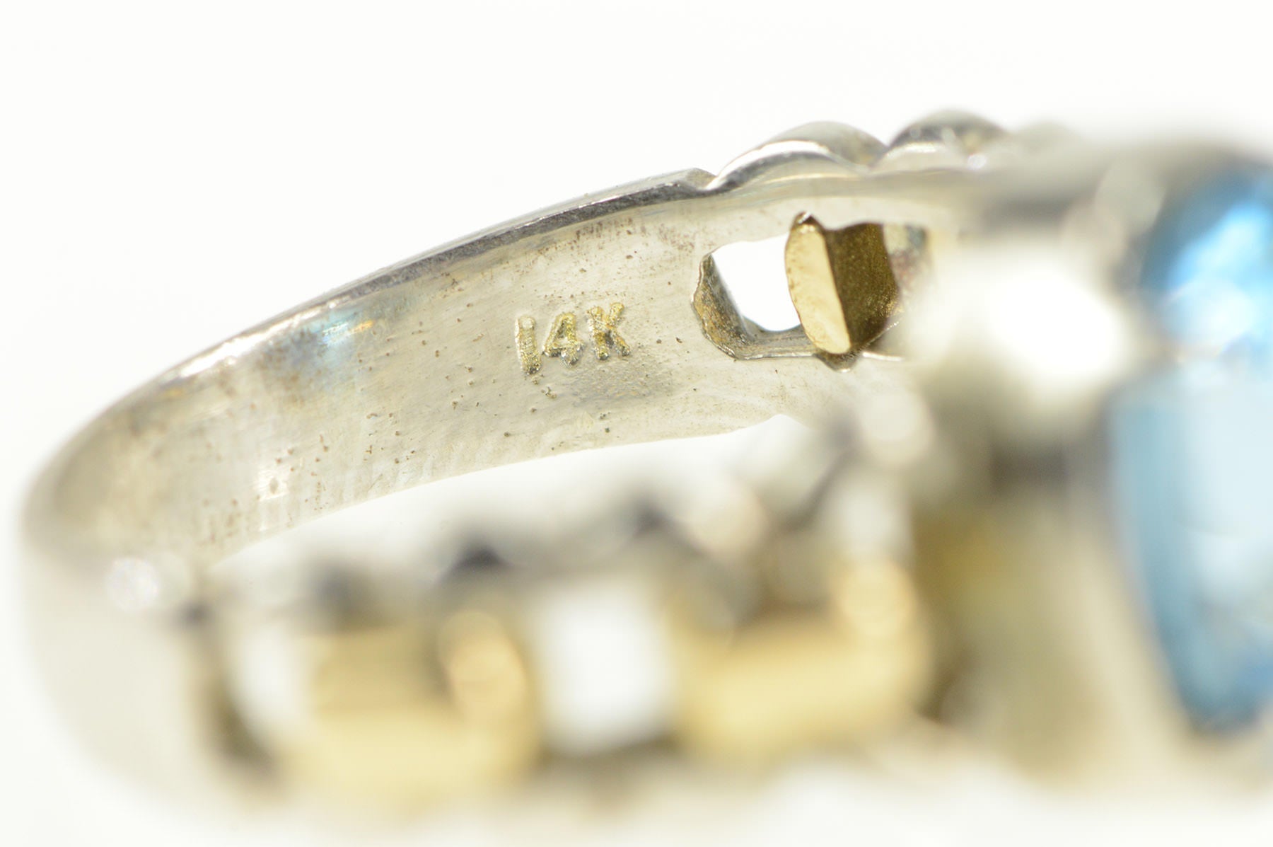 ·Item: 14K Two Tone 14k Gold Blue Topaz Chain Band Ring Size 6.25 Yellow Gold