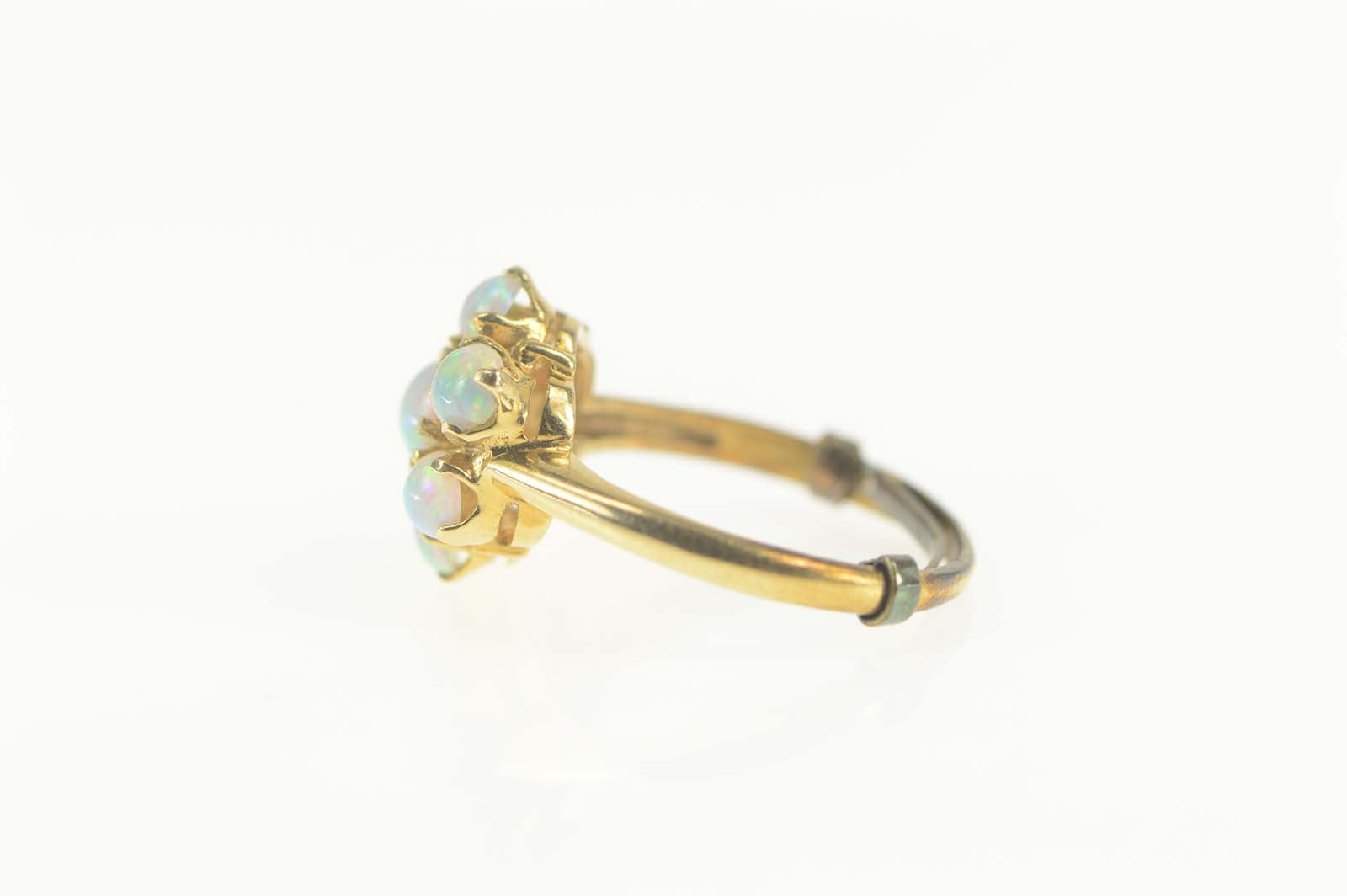 ·Item: 14K Victorian Opal Flower Cluster Statement Ring Size 4.75 Yellow Gold