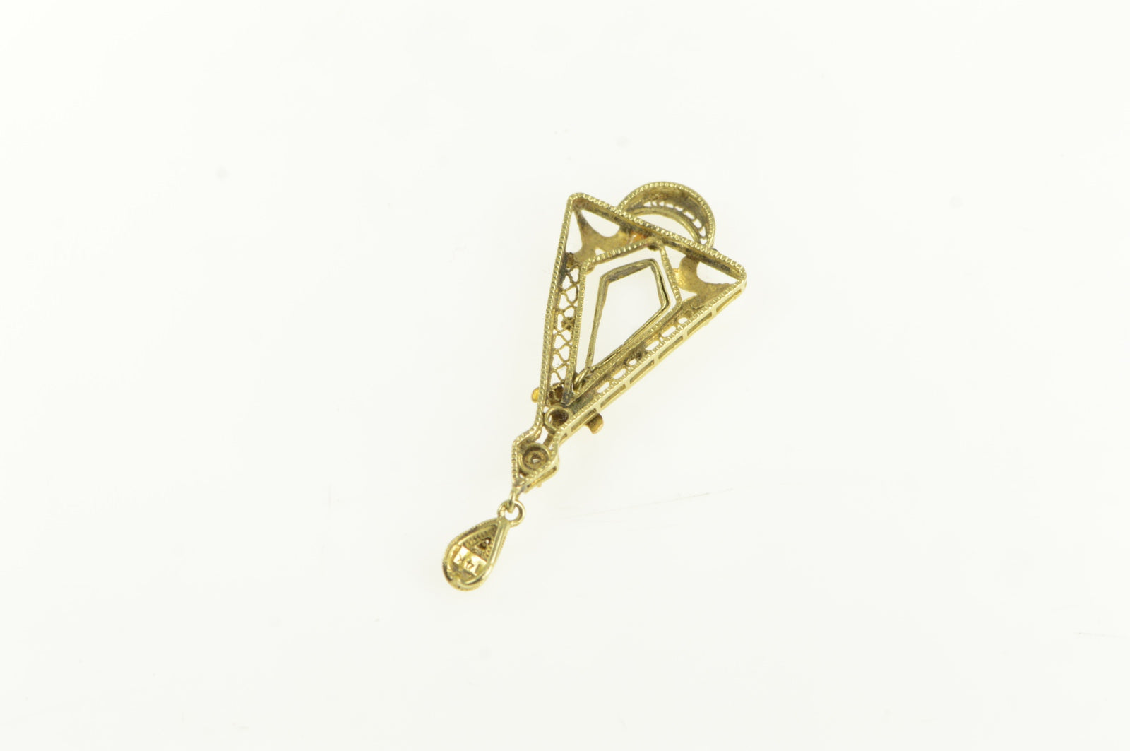 ·Item: 14K Victorian Ornate Filigree Drop Diamond Pendant Yellow Gold