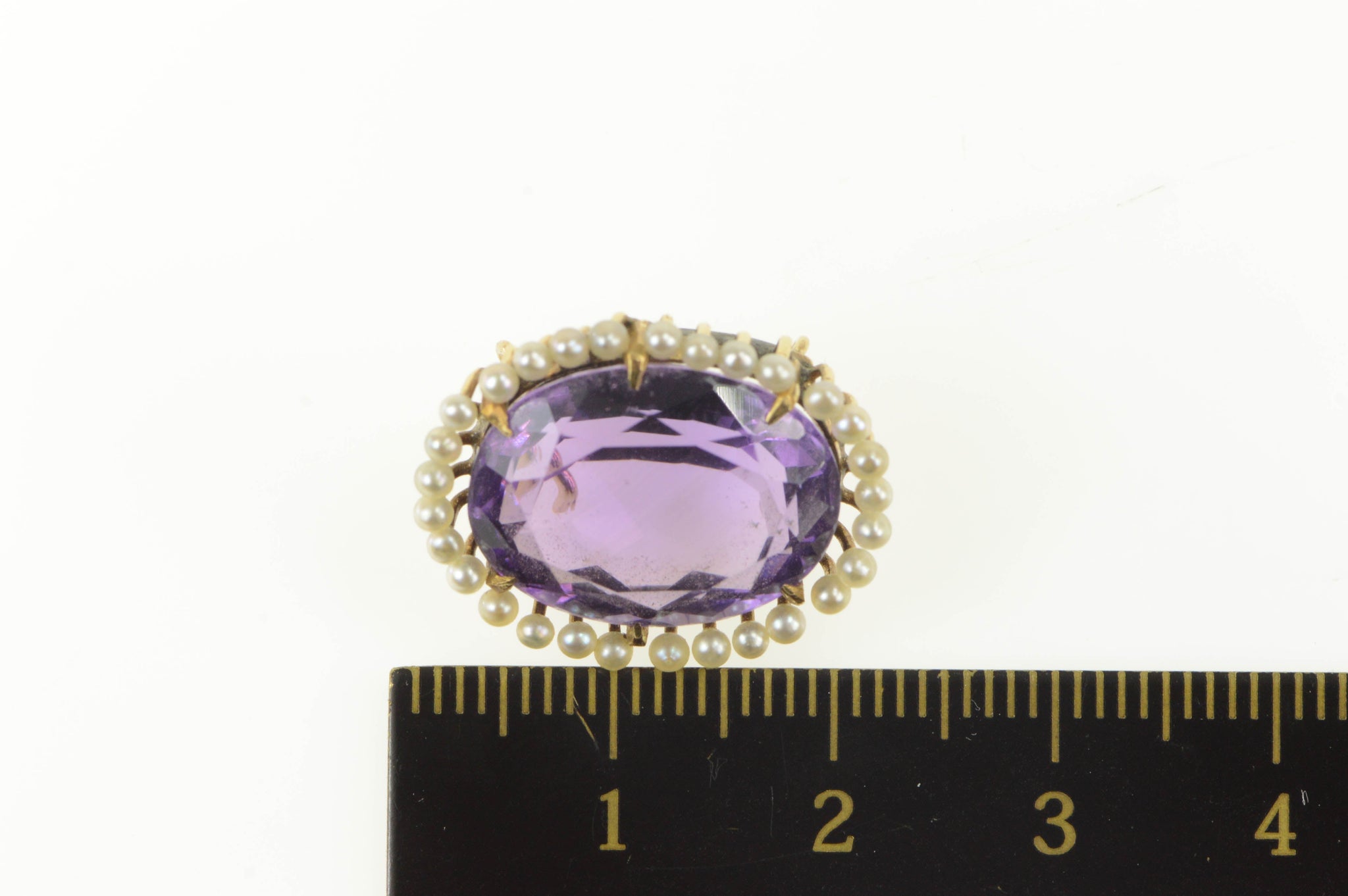 ·Item: 14K Victorian Oval Amethyst Seed Pearl Pendant Yellow Gold