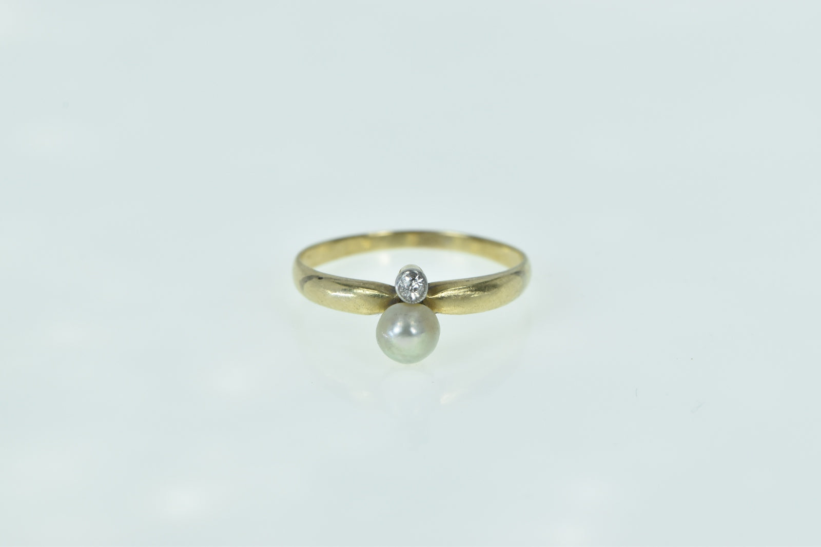 ·Item: 14K Victorian Pearl Ornate Diamond Accent Ring Size 6.25 Yellow Gold