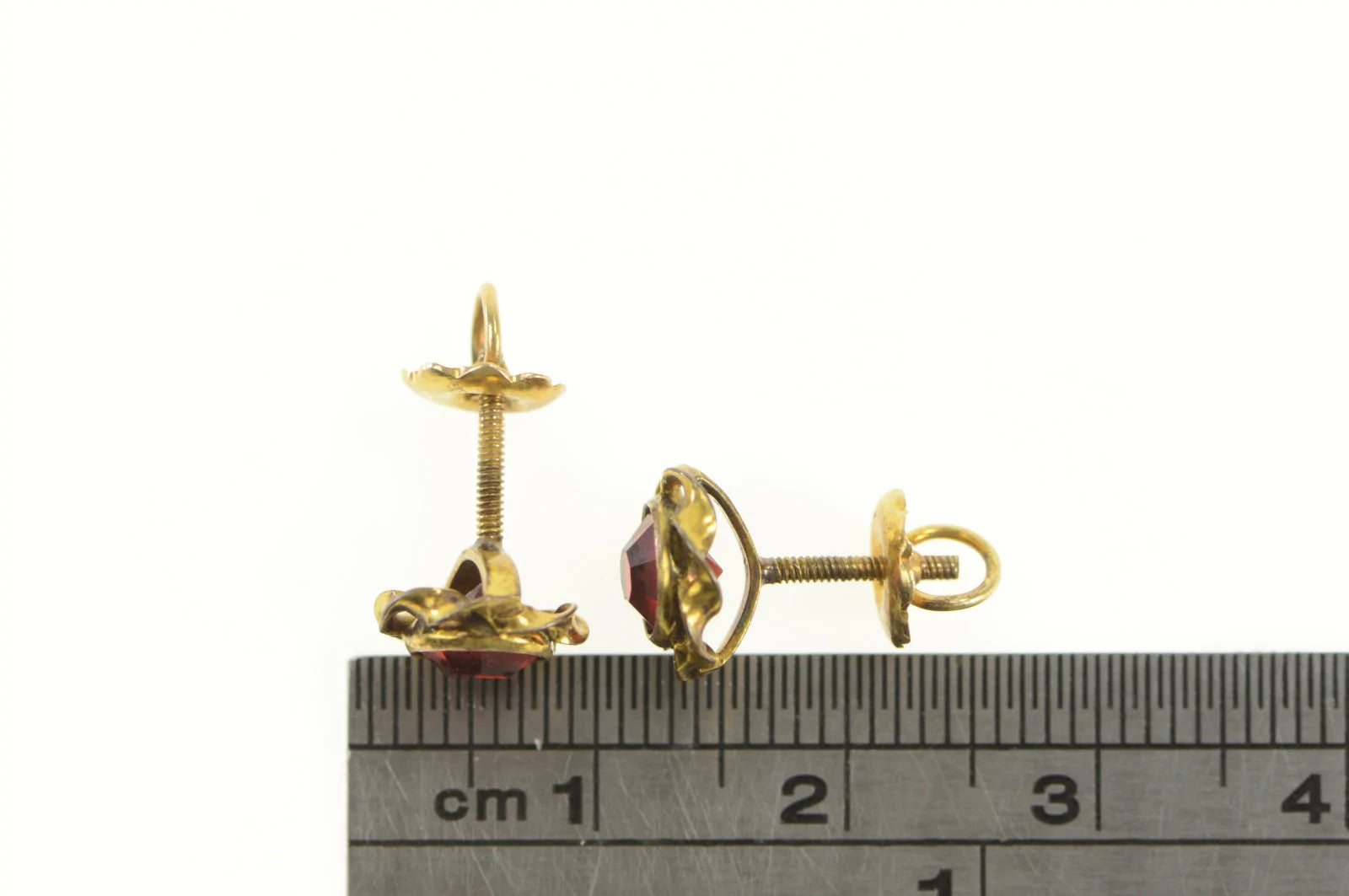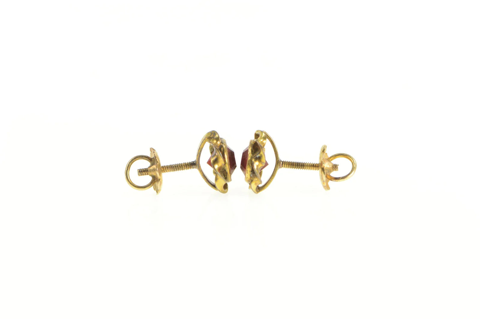 ·Item: 14K Victorian Sim. Ruby Ornate Screw Back Stud Earrings Yellow Gold
