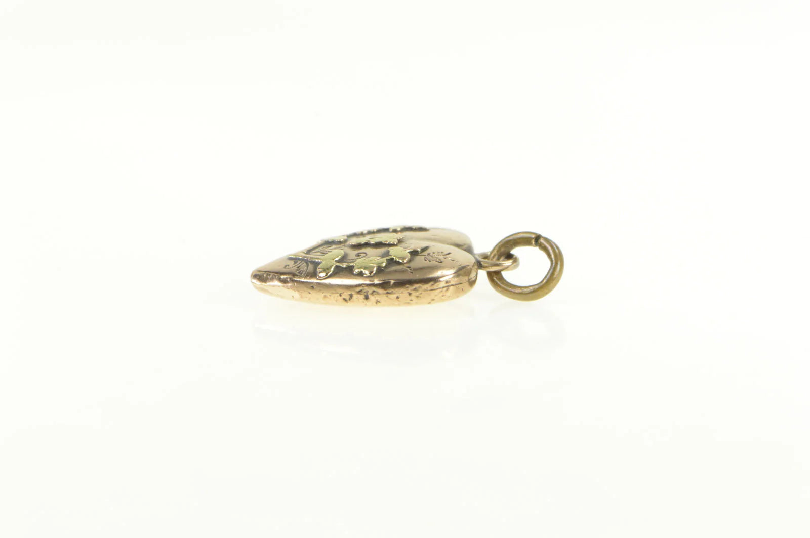 14K Victorian Thistle Forget Me Not Puffy Heart Charm/Pendant Yellow Gold