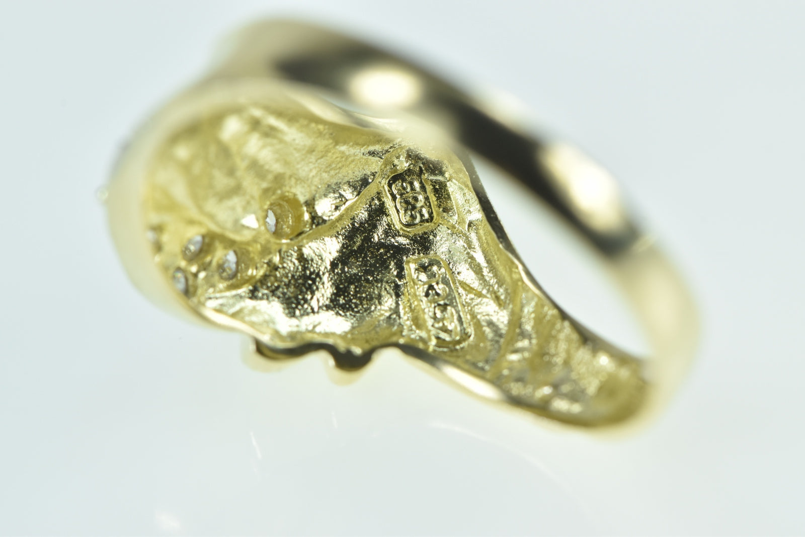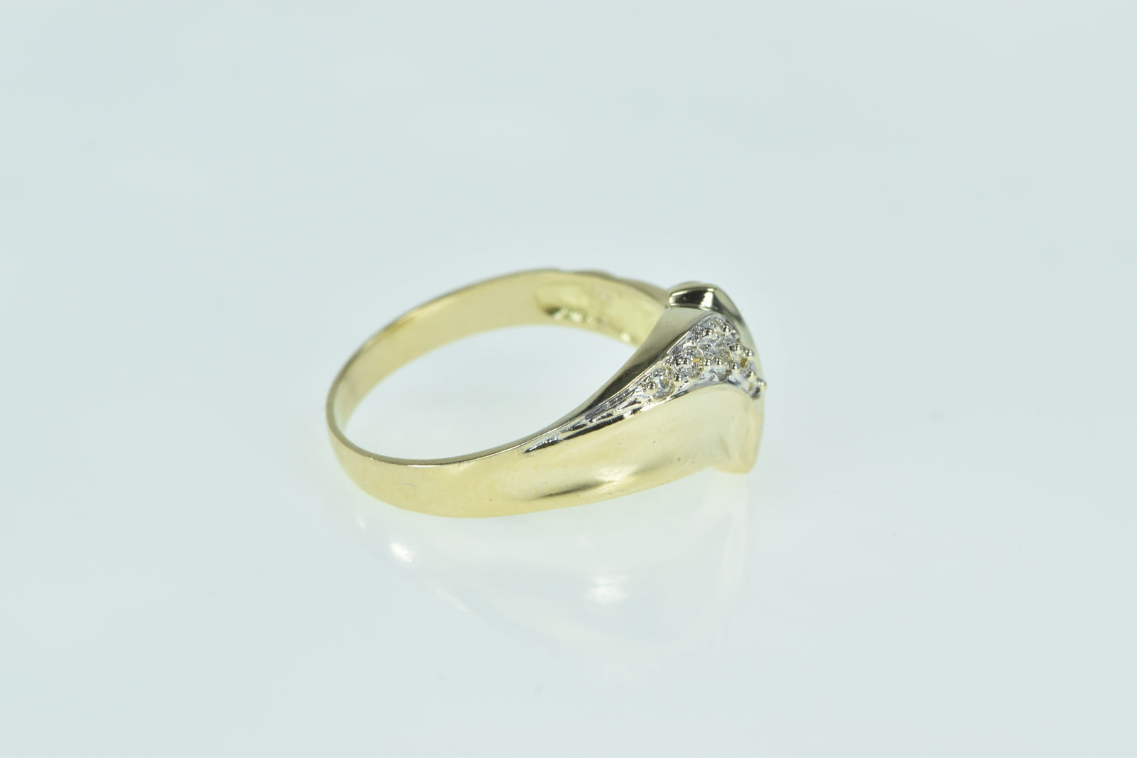14K Vintage Diamond Encrusted Curved Band Ring Yellow Gold