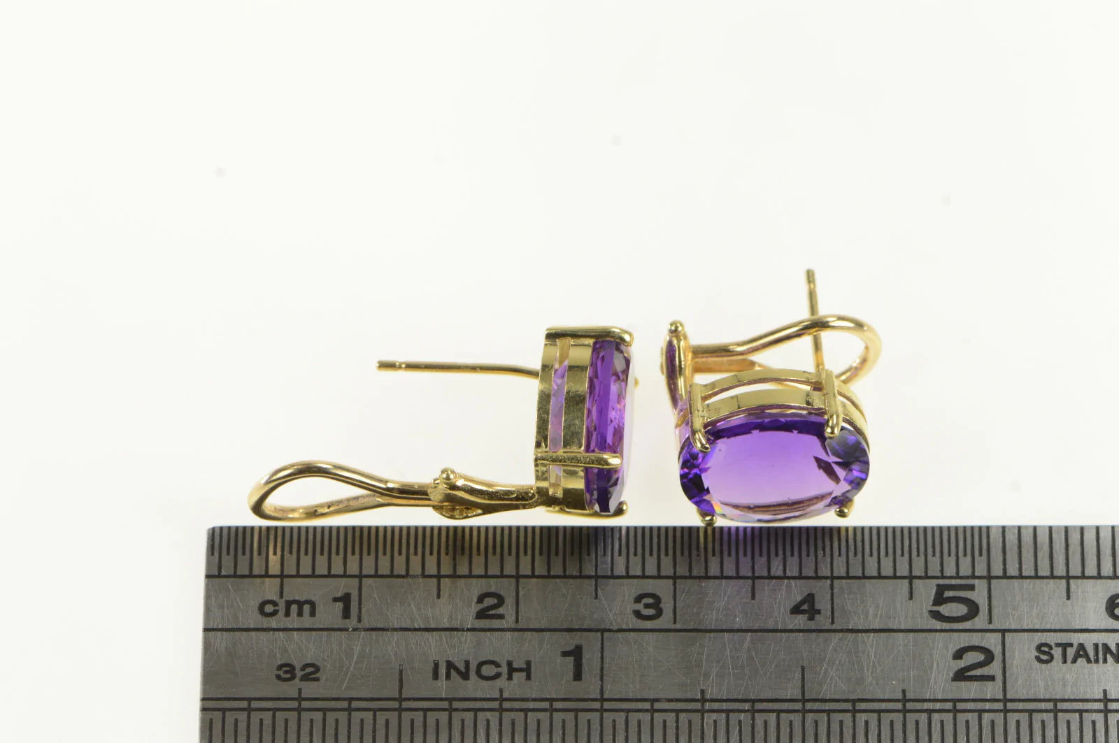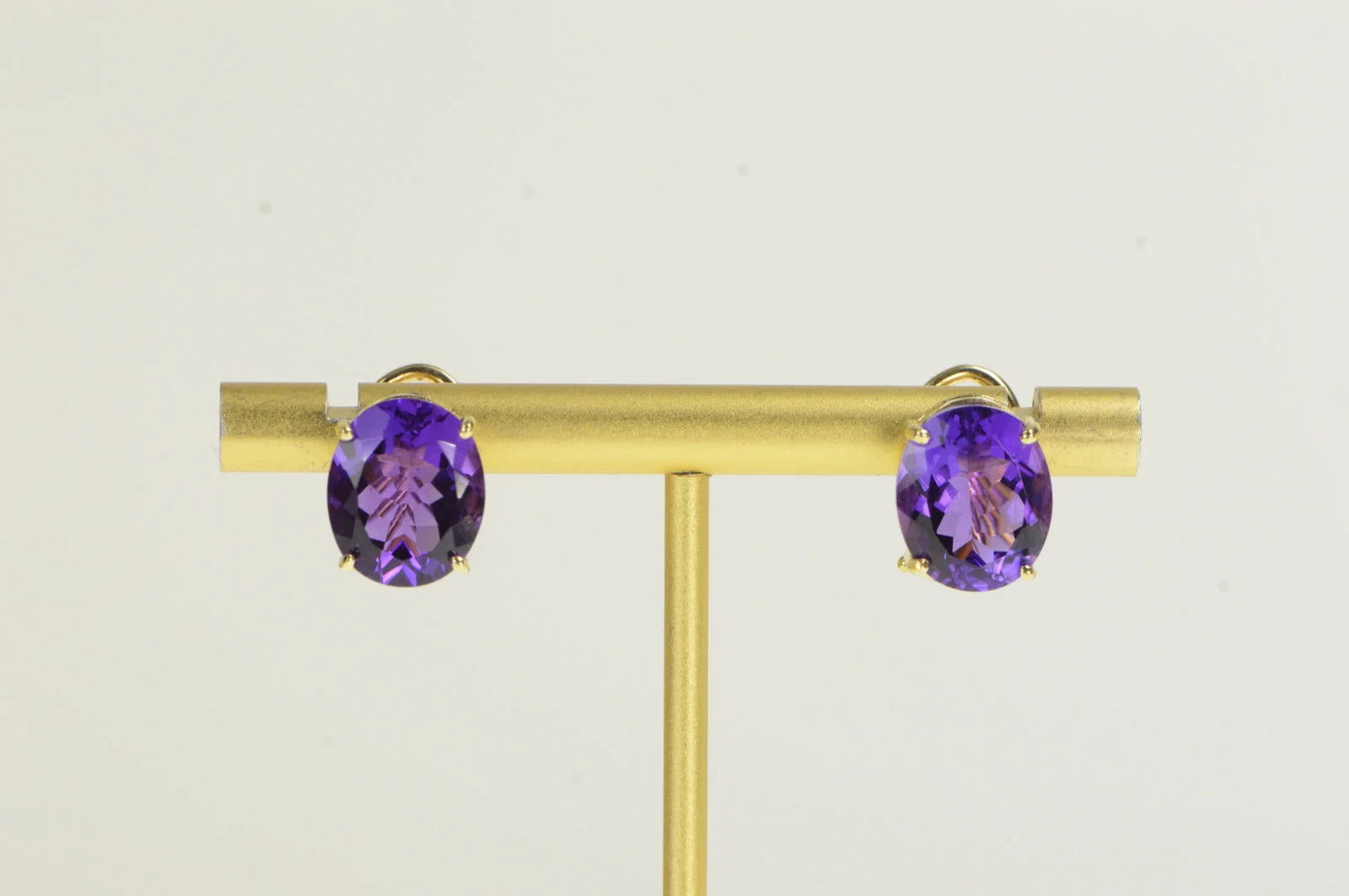 ·Item: 14K Vintage Oval Natural Amethyst French Clip Earrings Yellow Gold